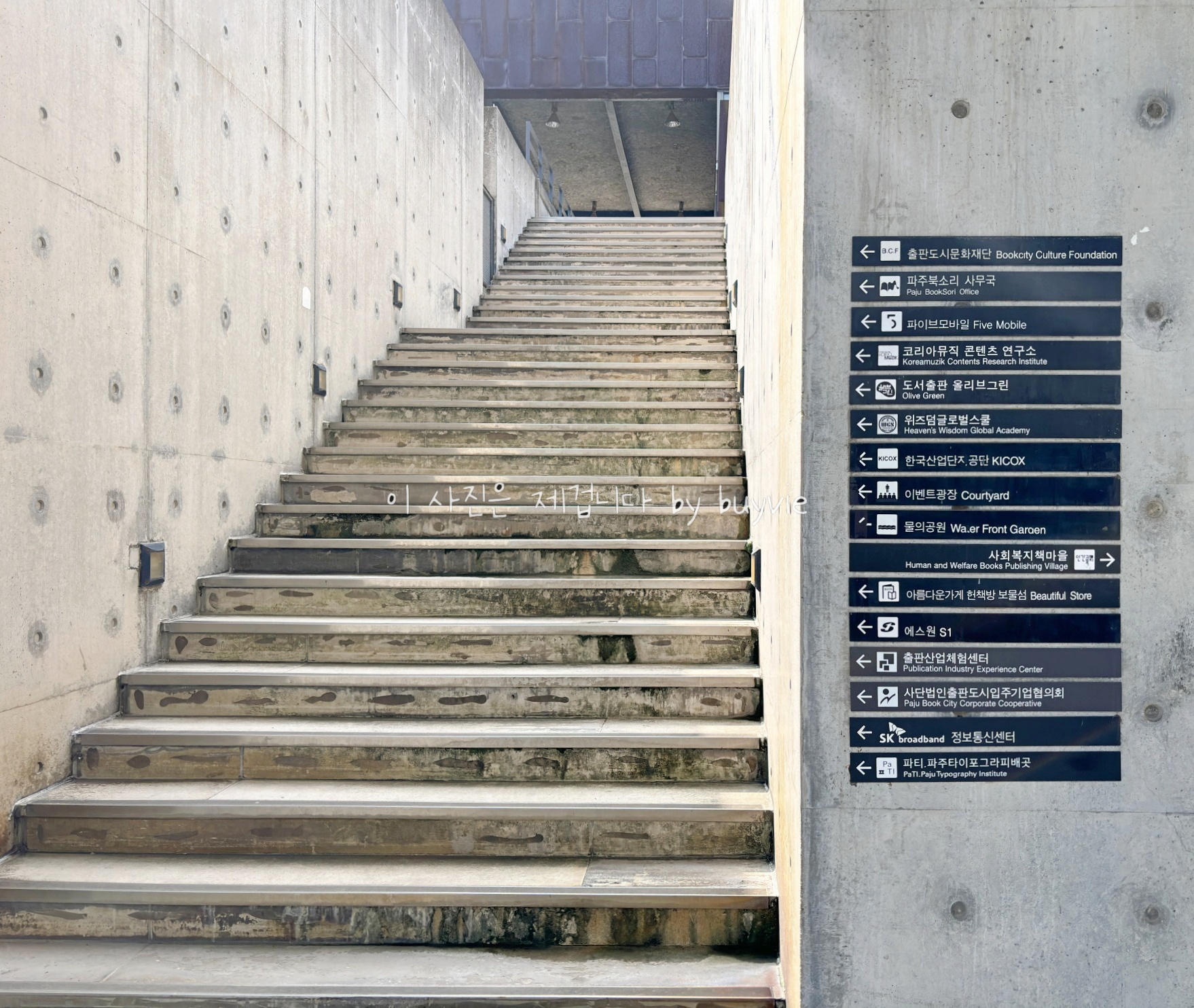 파주출판도시에는 볼거리가 꽤 많다. 그 중 가장 오래된 건물은 여기다. 파주출판도시의 시작이니까. 몇 개의 공간이 기능별로 분리되어 있는 복합적인 공간인데 안도 다다오 스타일의 노출 콘크리트벽이 특징이다.