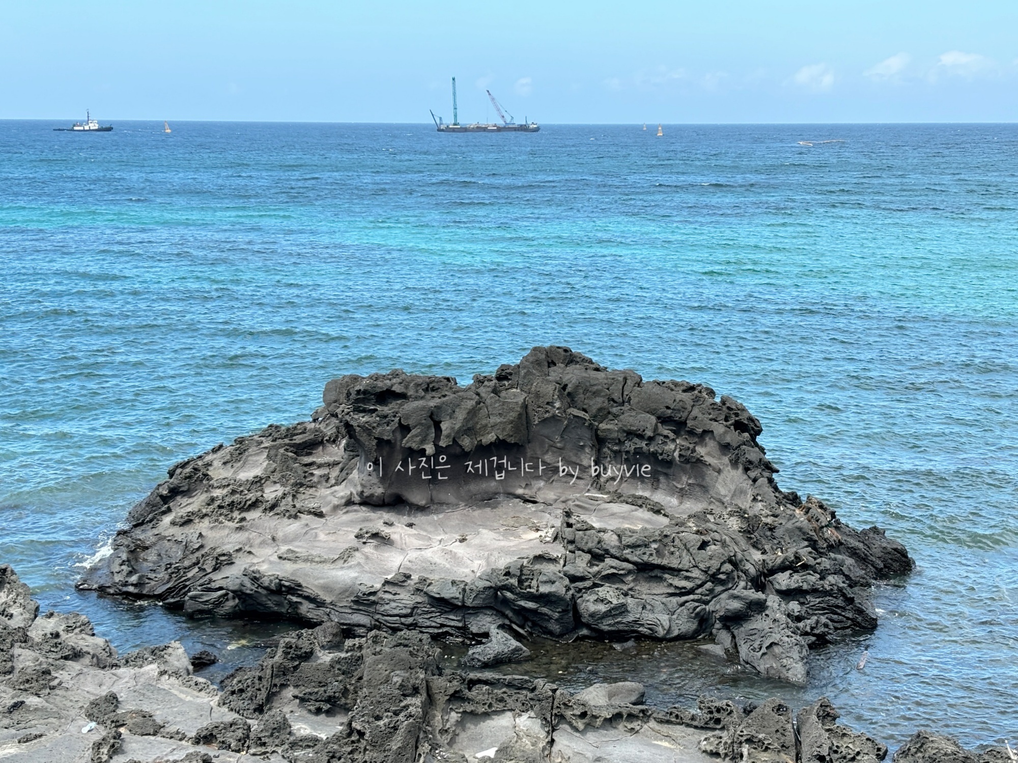 위 물통과 나란히 이것도 물통이다. 물이 빠질 때 모습이 드러나고, 물 저편에 도두봉이 보인다.