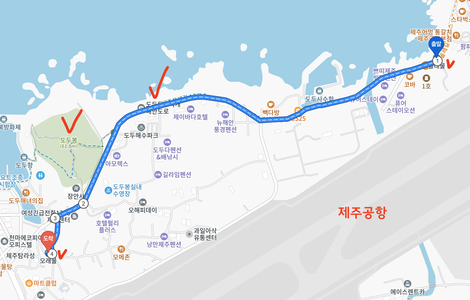 제주공항근처 도두해안도로 가볼만한 곳을 4군데 스팟 중심으로 소개하고자 한다. 몰래물에서 오래물까지 구간 안에 4개의 스팟과 주변의 볼거리를 정리해 보았다.