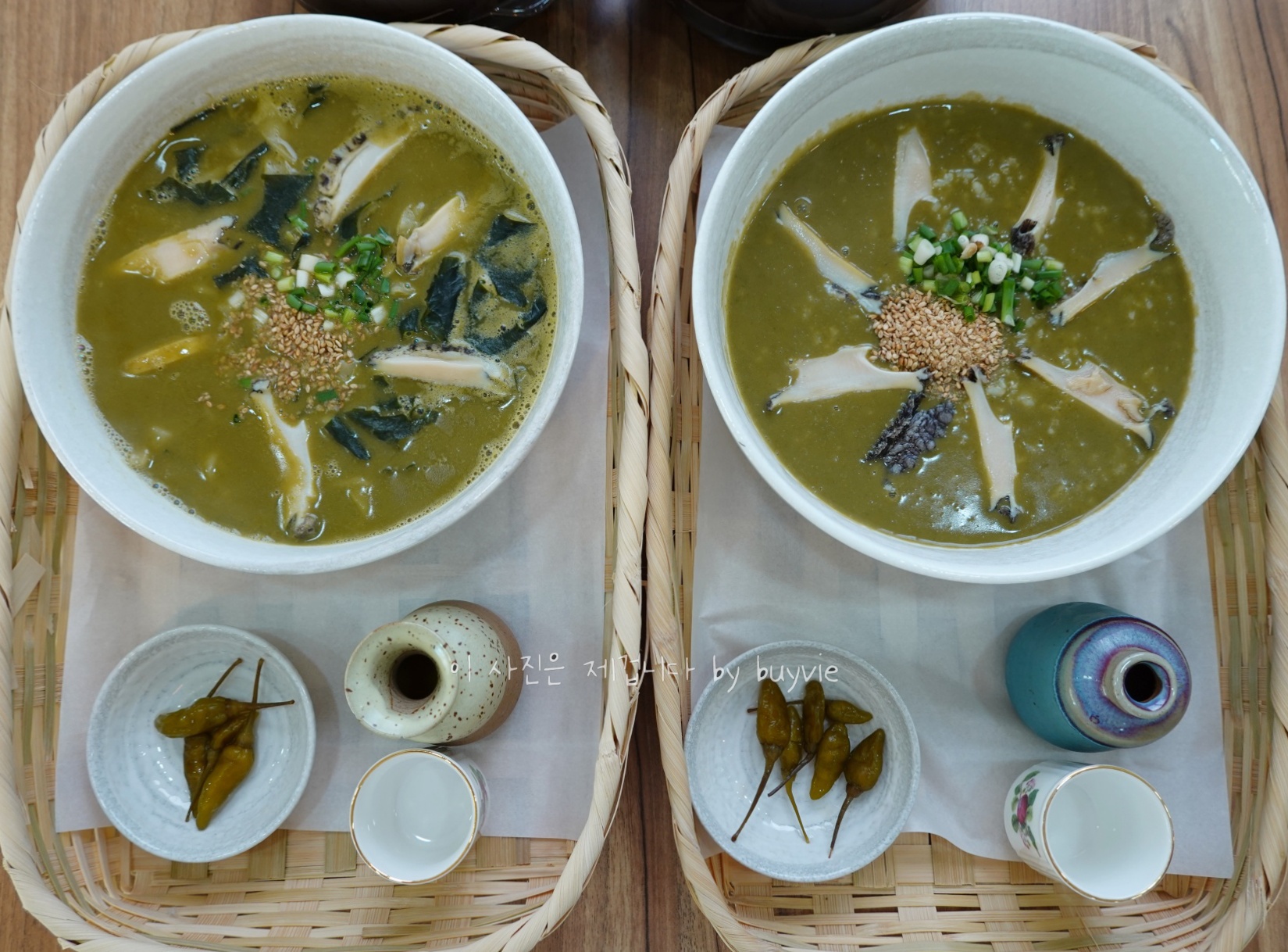 진한 국물이 좋은 보말전복칼국수(13,000원)와 차롱보말전복죽(18,000원)이 시그니처이다. 디저트로 천혜향 착즙주스가 나온다.
