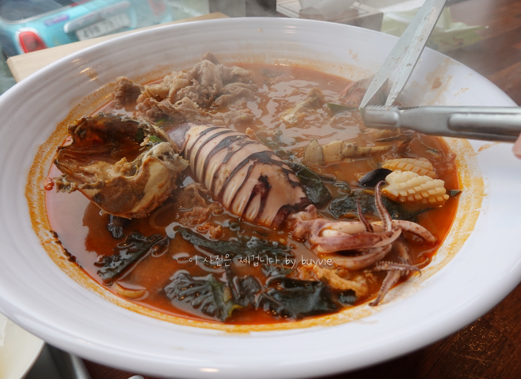 해물탕에는 전복, 조개, 게, 소라, 새우와 함께 문어한마리가 들어가 매우 푸짐하고, 상차림에 라면사리, 옥돔구이, 고등어 등이 포함된다.