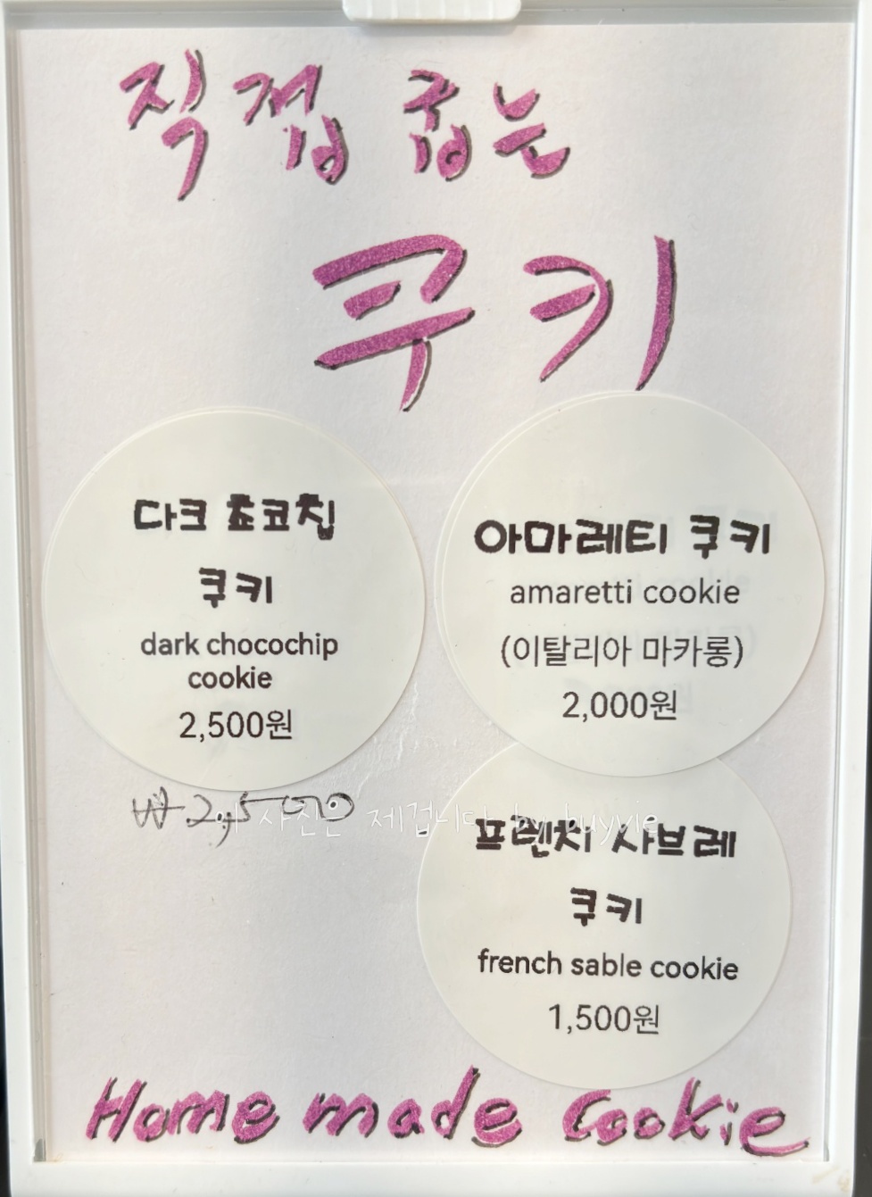 커피는 핸드드립커피를 서비스한다. 쿠키도 홈메이드 수제 쿠키이다. 사장님은 손으로 하는 건 다 잘하시나 보다. 커피도 쿠키도 맛있다.