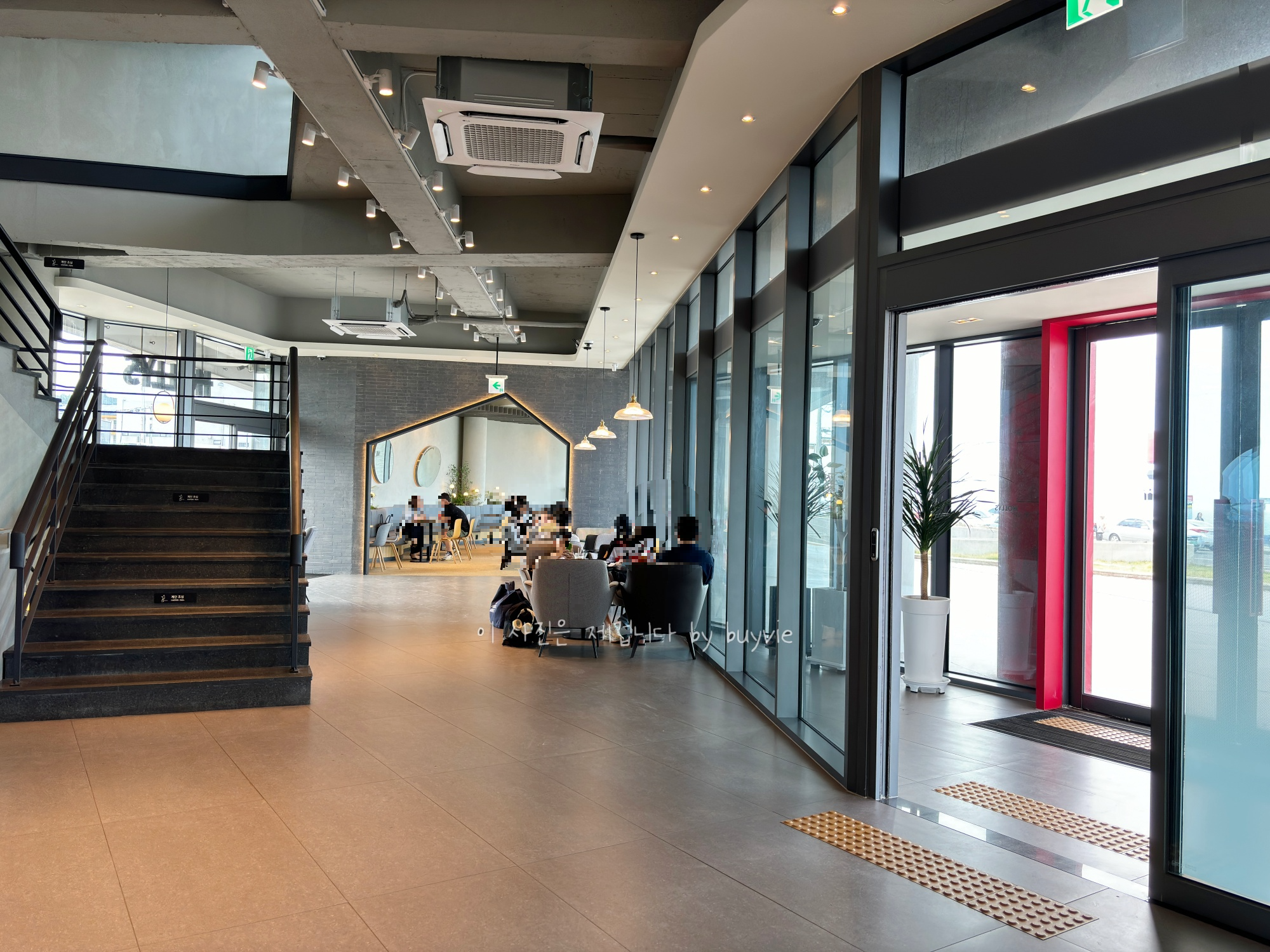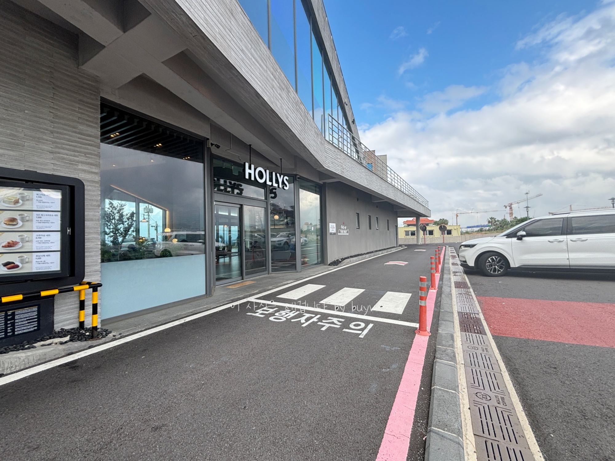 지점 이름에 나와 있는 것처럼 이 매장은 DT, 드라이브쓰루점이다. 매장을 한바퀴 돌아나가면서 커피를 주문하고 테이크아웃 해 갈 수 있다. 코로나 때 대부분 제주에 대형 커피 체인들이 DT점으로 오픈 하거나 이미 DT점이었던 곳들이 재미를 보았다. 이제는 이용자가 확 줄었지만 이게 편리할 때가 있어서.. 난 제주도 살때 자주 이용하곤 했다. 커피를 주문하는 찻길 뒤로는 대형 주차장이 있다.