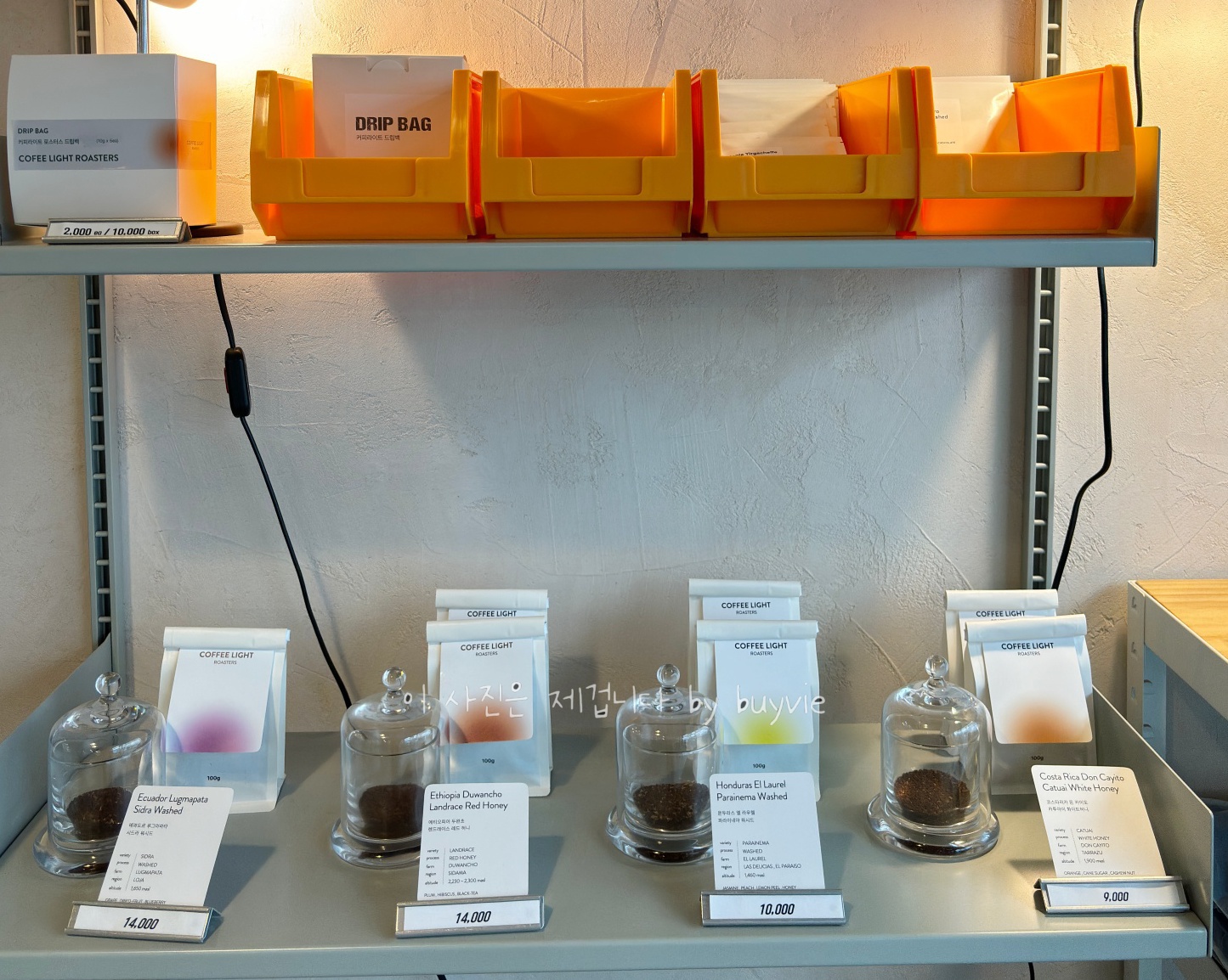 원두 구매할 수 있고, 드립백도 구매할 수 있습니다. 저는 여행 다닐 때 드립백을 챙겨가는 편인데요, 요즘은 제주에서 드립백 구매할 수 있는 카페들이 많아져서 좋습니다.