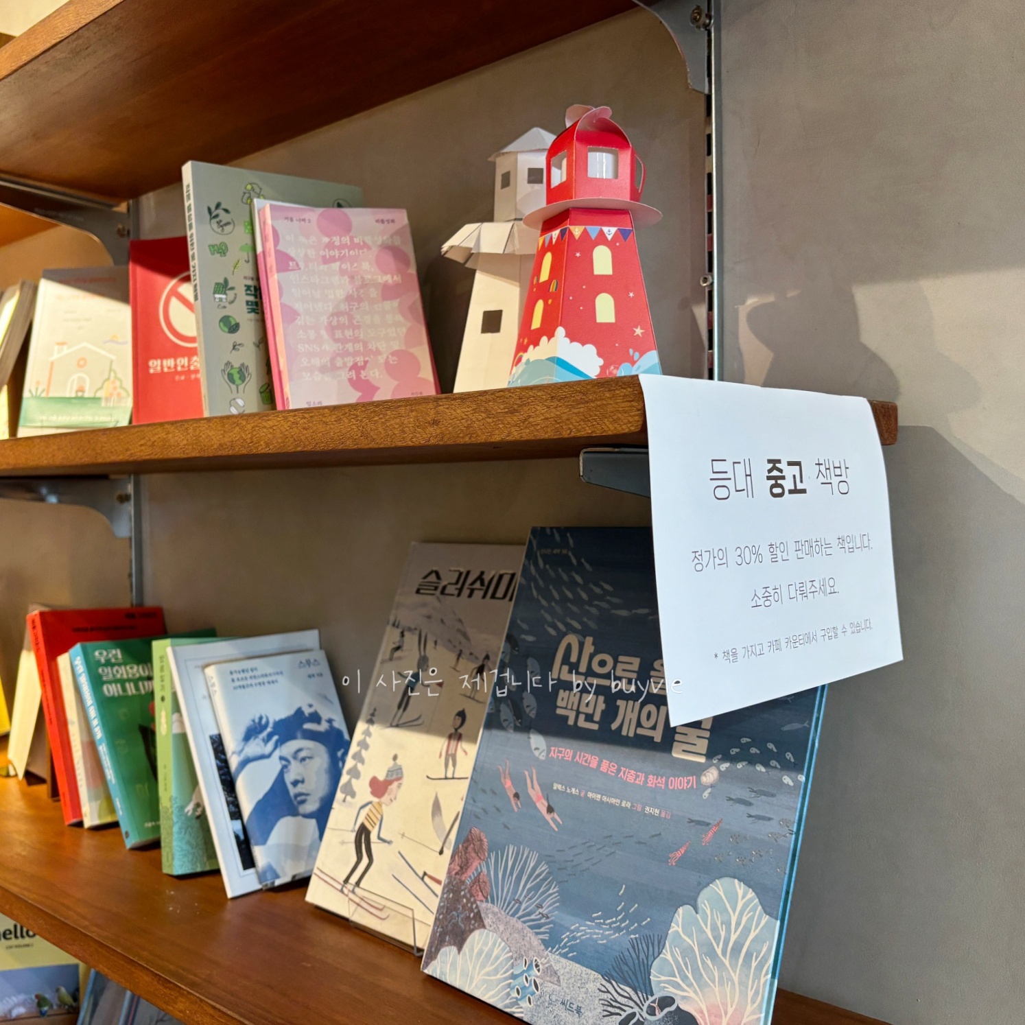 약간의 중고서적과 독립출판물을 판매하고, 실내는 분위기가 차분해서 책 읽기도 좋은 카페입니다. 책 보다가, 바다 보다가 그러는 거죠.