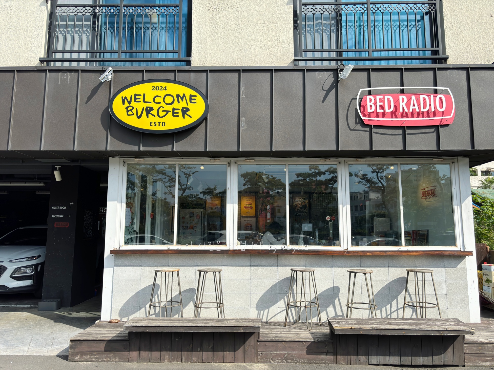 베드라디오 동문은 5층 + 옥상으로 구성되어 있고, 1층은 웰컴버거집입니다. - 버거집이 조식당과 프론트데스크 역할도 함께 하고 있어요. 예전에는 이곳이 멜맥집(멜튀김+맥주)이었는데, 현재 운영중인 버거집이 더 인기가 있는 것 같습니다.