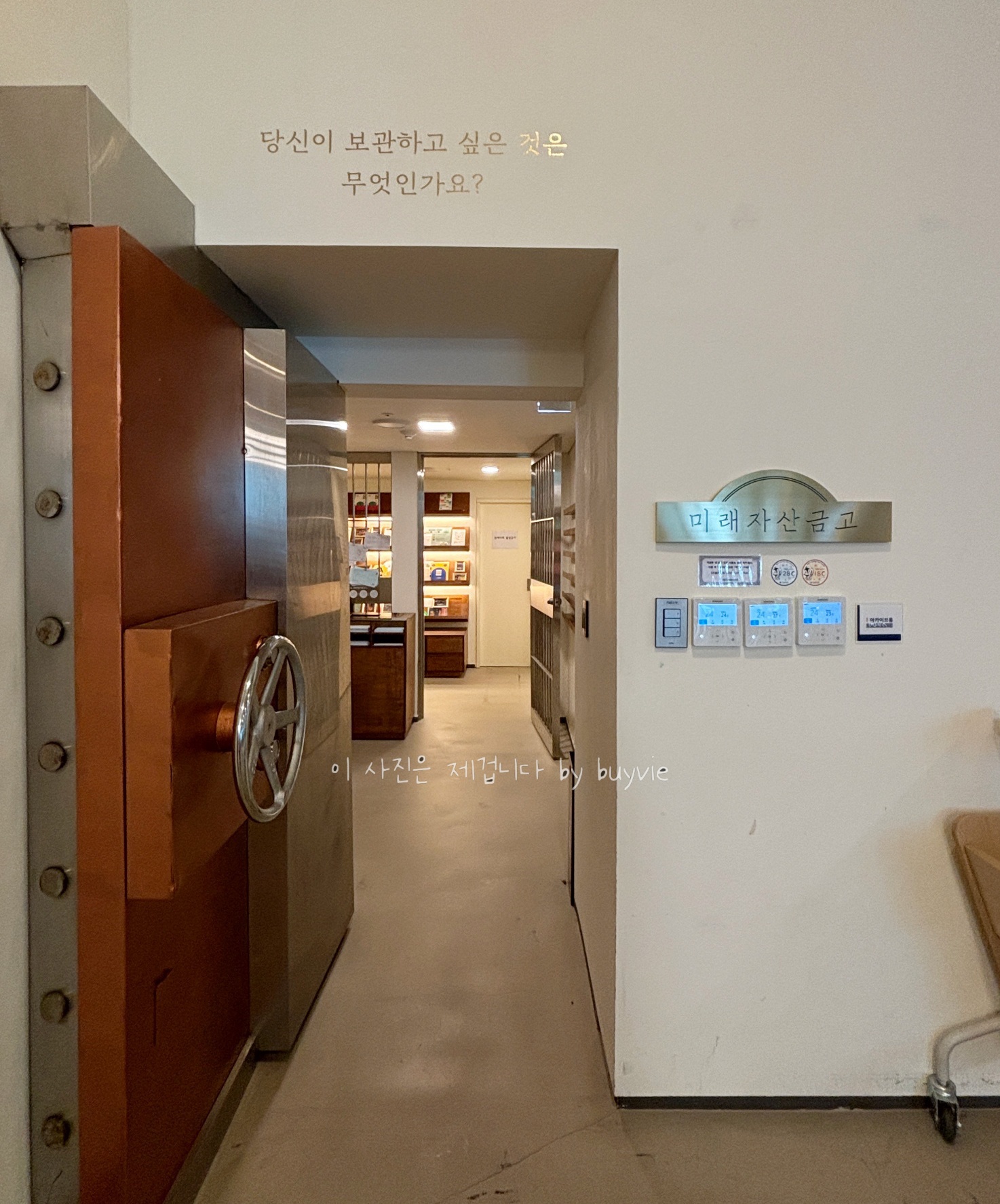 미래자산금고는 카페와 도서관 뒷편의 숨겨진 공간이다. 금고 컨셉으로 소통협력센터의 프로젝트들을 모아 놓았다.