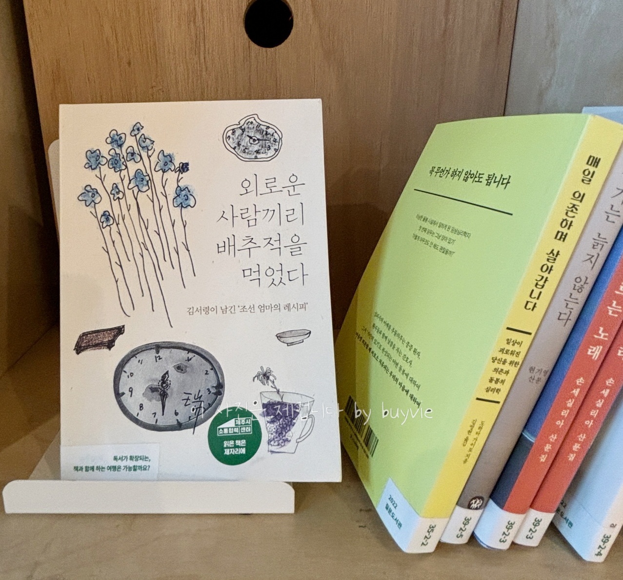 어떤 질문에 대한 책인지 알 수 있도록 책 왼쪽 아래에는 질문이 마킹 되어 있다. [외로운 사람끼리 배추적을 먹었다.] 음.. 배추적이 먹고 싶네. .