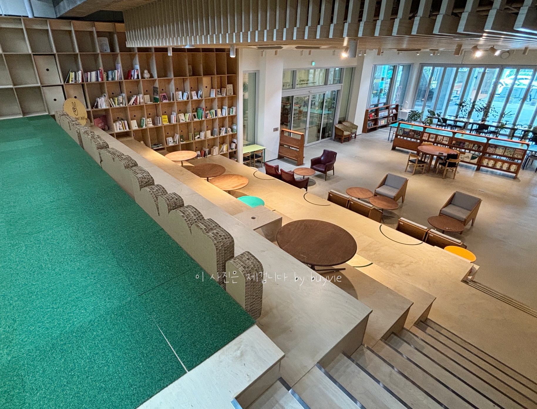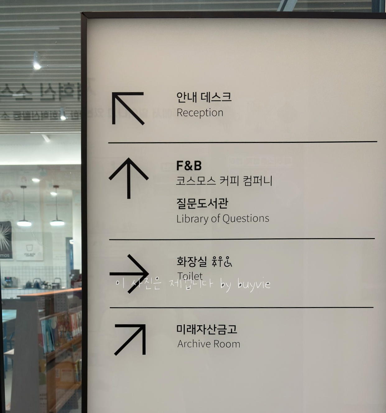 이 공간에는 코스모스 커피 컴퍼니, 질문도서관, 미래자산금고가 같이 자리하고 있지만 그냥 얼핏보면 하나의 북카페이다. 이용자 입장에선 차도 마시고 책도 읽을 수 있으니 북카페지 뭐.