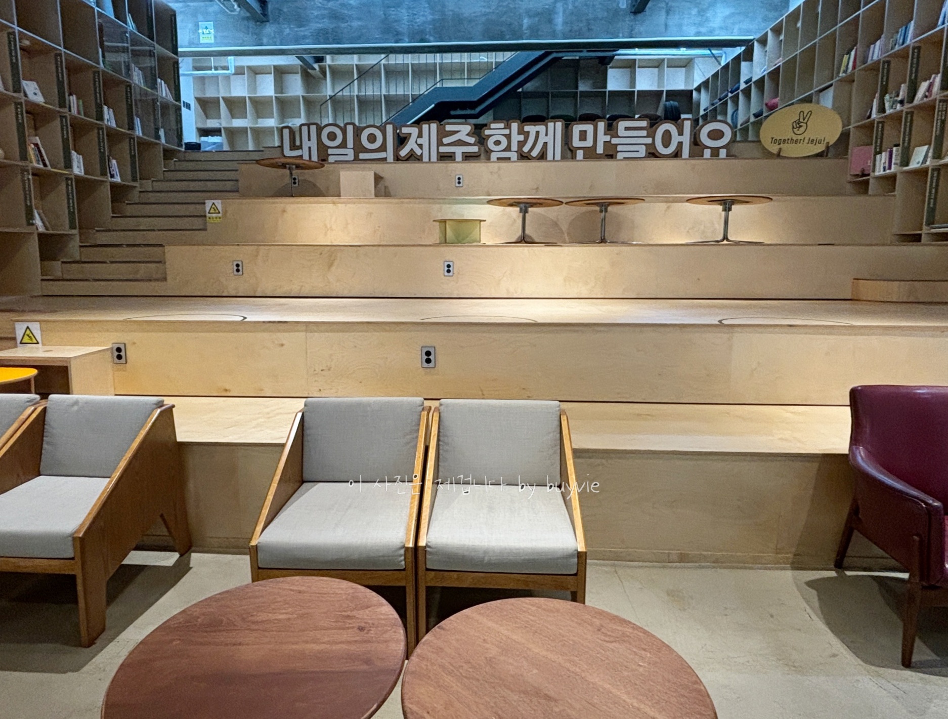 제주동문시장 근처, 조용하고 깔끔한, 쉬어가기 좋은 북카페 코스모스 커피컴퍼니를 소개한다. 정확히 말하면 제주소통협력센터에 카페와 도서관과 미래자산금고라는 독특한 공간이 함축된 복합공간을 소개한다.
