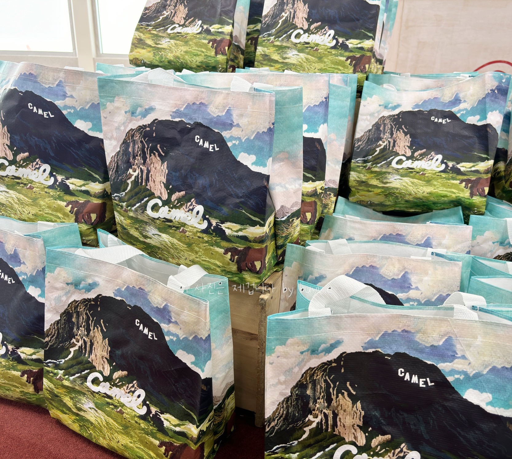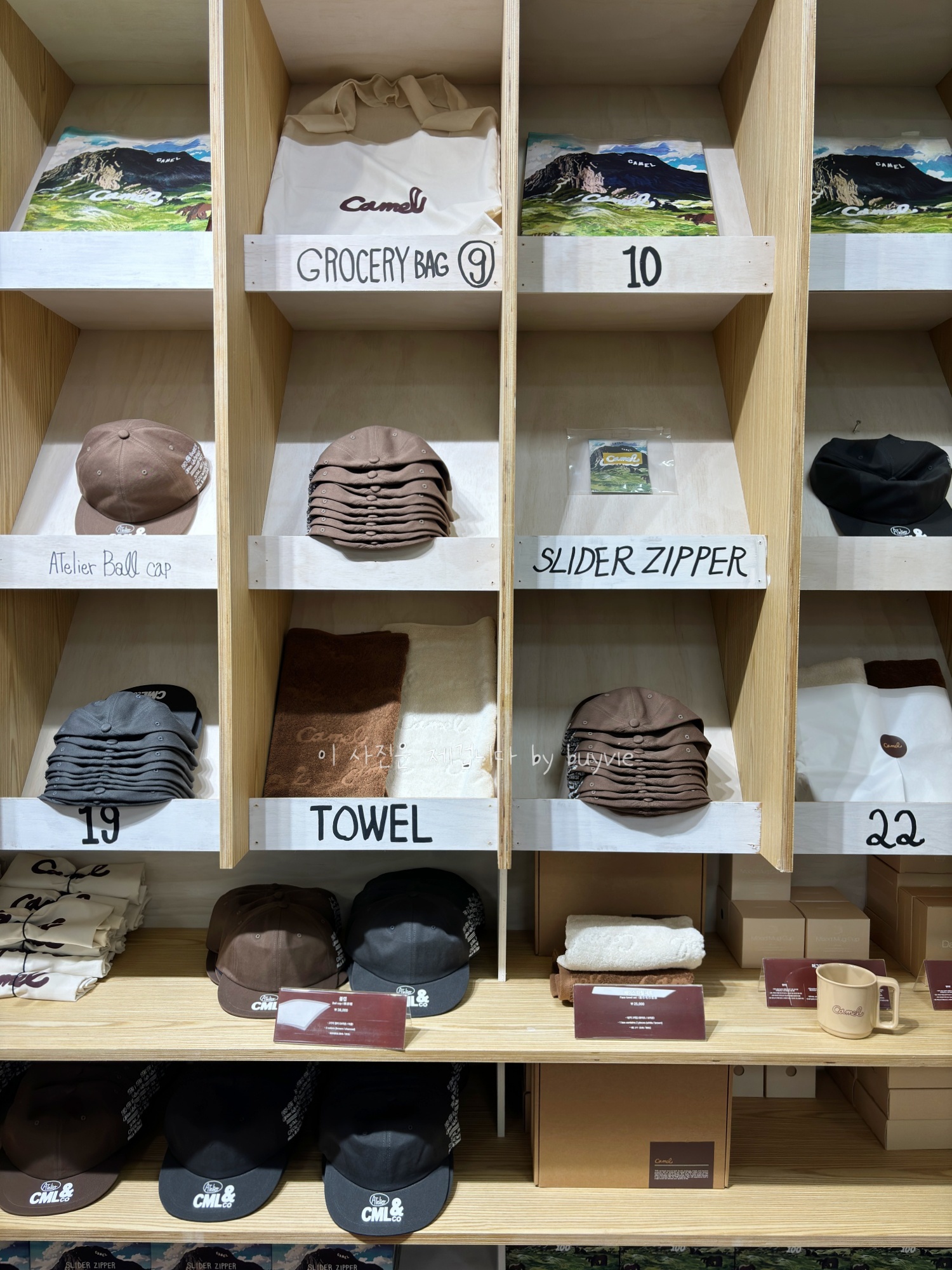 카멜의 모자, 수건, 티셔츠도 판매 중이다. 온라인샵에서 확인해 보니 제주공항 팝업스토어와 셔츠, 모자 디자인이 다르다. 제품이 마음에 든다면 여기서 바로 사야 할 듯.