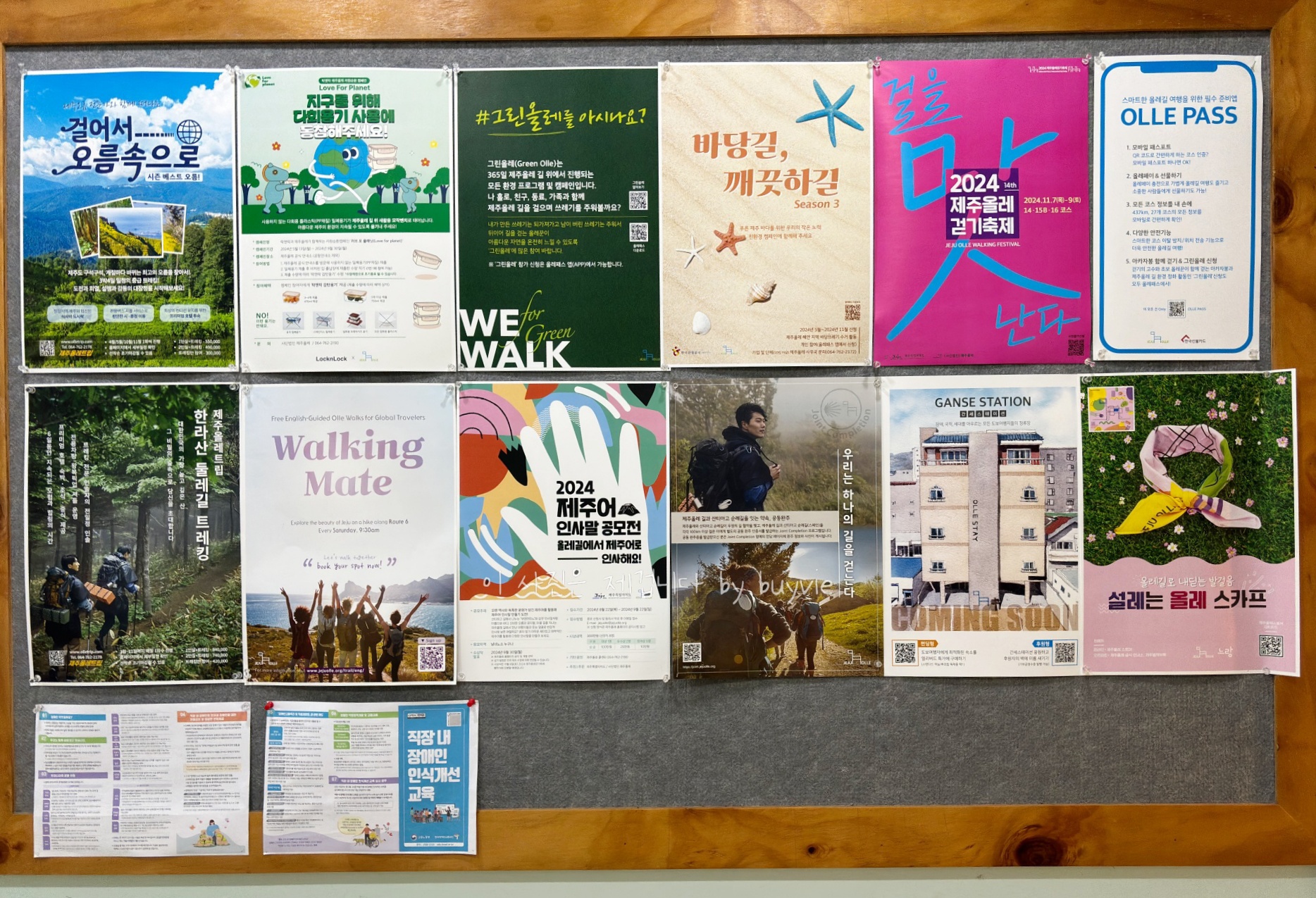 게시판에는 항상 많은 홍보물이 있다. 이제는 제주올레도 계열사가 몇 개 되니까 각자 음청 열심히들 한다. 예를들어 제주올레 계열사 중 하나로 제주올레트립이 있는데 올레길을 응용한 투어 상품을 판매한다. 두 발로 걸어가는 여행인데 저렴하겠구나.. 생각할 지 모르지만 예상보다 가격대는 좀 있는 편이다.