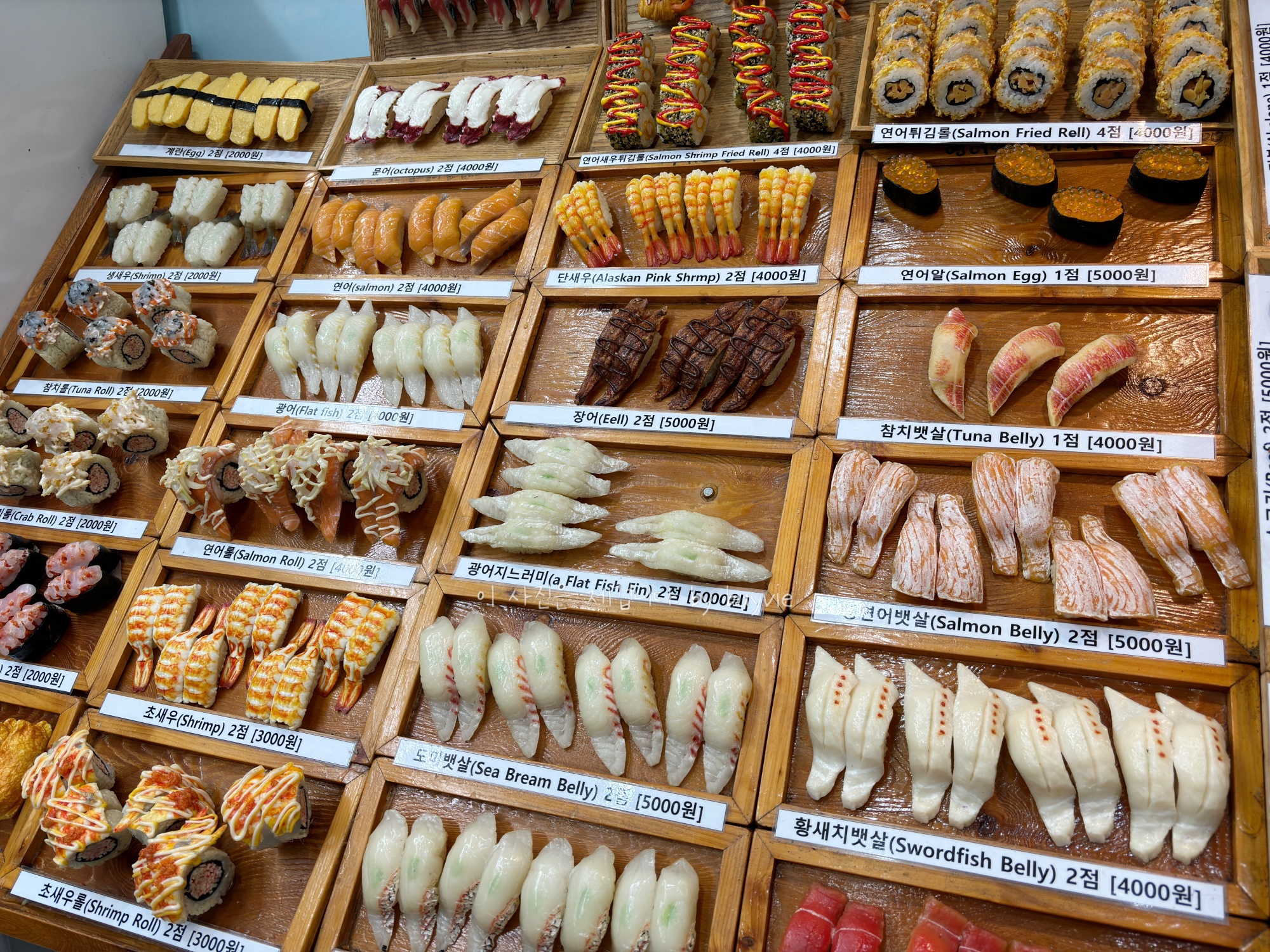 예전과 마찬가지로 원하는 초밥 모양의 자석을 쟁반에 담아 올려놓으면 그대로 만들어 주신다. 물론 기본적인 세트메뉴도 있다. 난 저렇게 주문하는게 좋은데, 귀찮다면 메뉴판에 있는 메뉴대로 주문해도 된다.