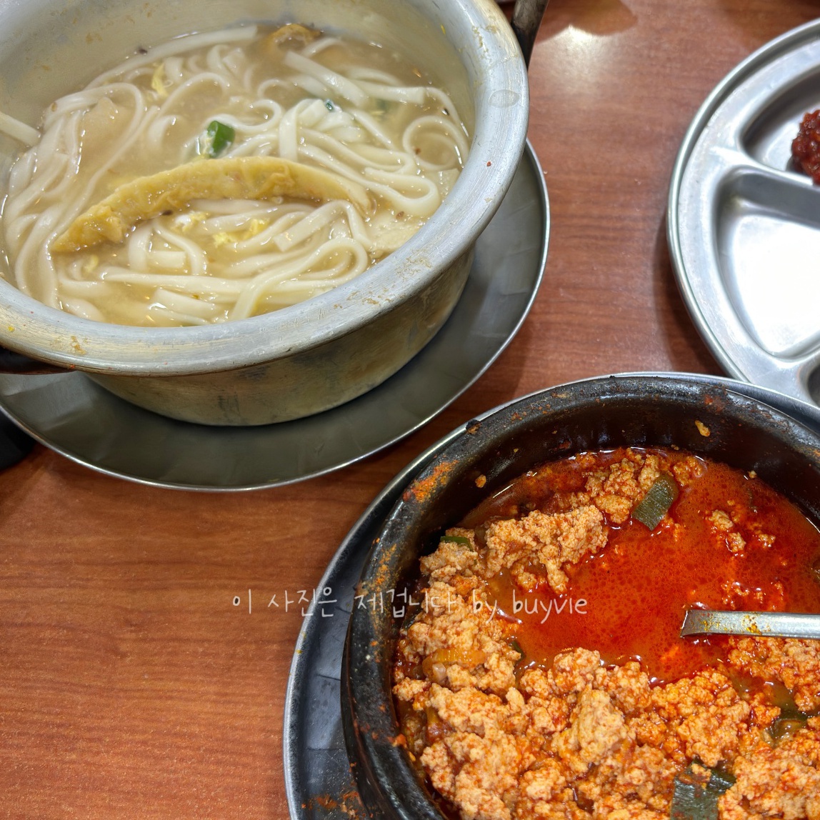 혼자 가면 순두부를 일단 디폴트로, 일행이 있으면 국수 종류를 하나 주문하는 편이다. 먹고 나올 때는 비빔밥, 기본 국수도 먹어봐야지 다짐하지만 또 냄비우동과 순두부를 주문했다.