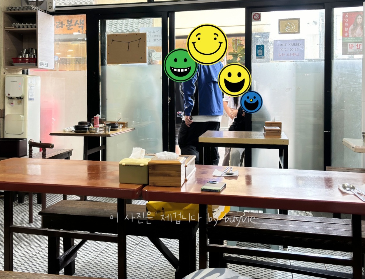 그니까 요 앞에 보이는 저 테이블들도 빈 테이블 아니라 손님 바뀌는 중인 테이블, 문 밖에 한 가족 기다리고 있다. 다들 잘 드시고 가셨길...