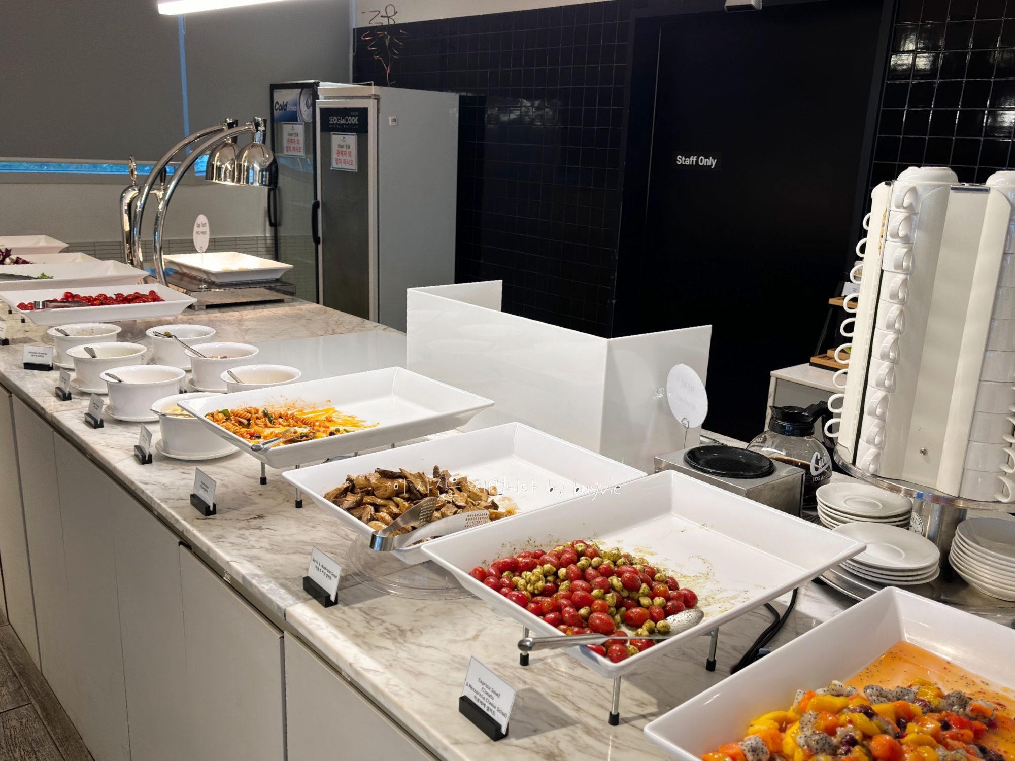 아침식사 하는 곳은 1층에 있는 서가앤쿡이다. 서가앤쿡 메뉴가 나오는 건 아니고, 장소를 그렇게 쓴다. 그니까 아침식사 시간은 휘슬락 호텔 조식당이고, 점심부터 서가앤쿡이다. (식당도 공간 절약)