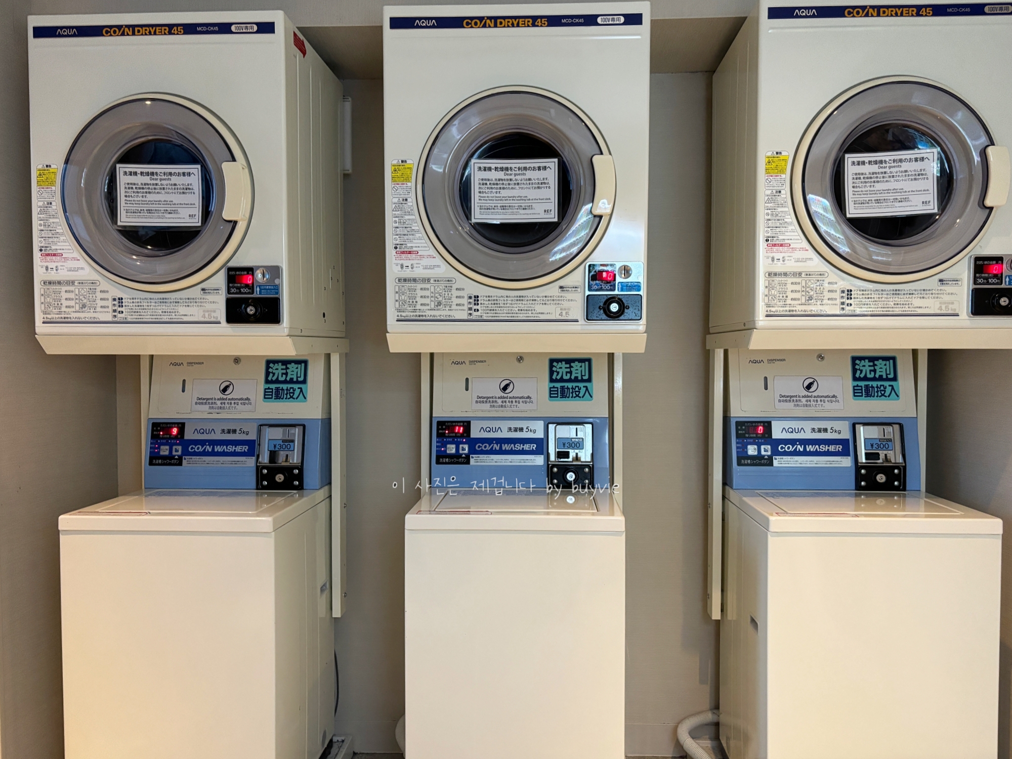 코인 세탁기와 건조기가 3세트 준비되어 있고, 옆으로 동전교환기가 있다. 같은 공간에 벤딩머신, 정수기, 얼음, 전자레인지가 있다. 정수기 아래 유리 주전자와 전자레인지 아래 얼음버킷을 사용할 수 있겠다. 일회용 페트병 생수는 머신에서 구매할 수 있다.
