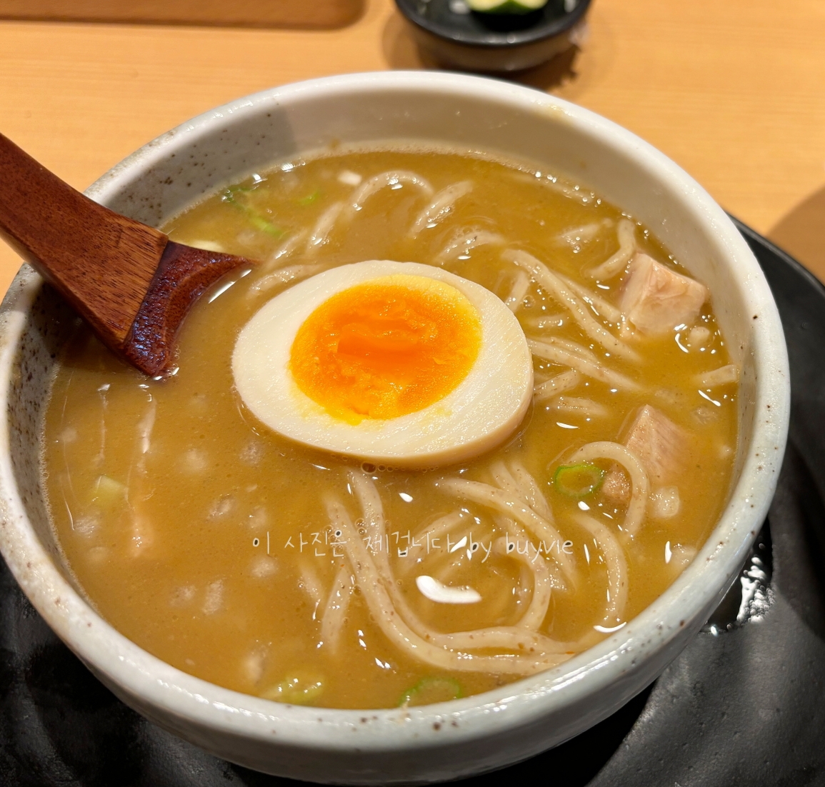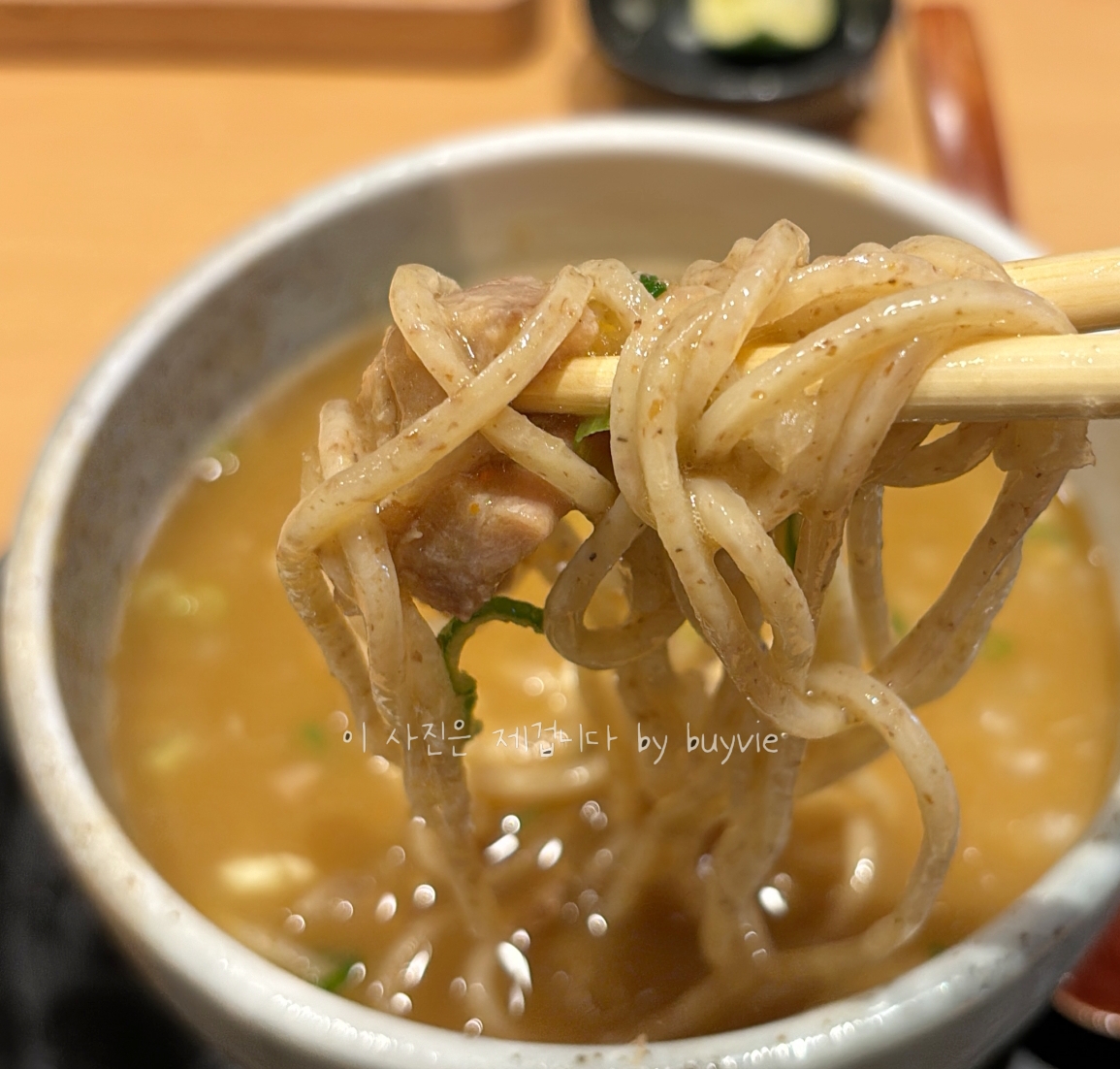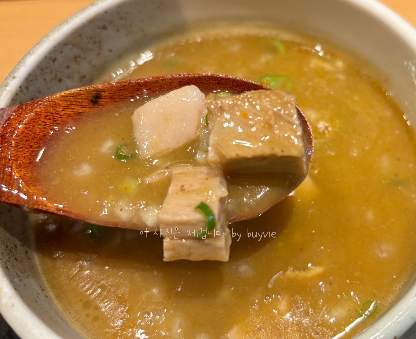 음식이 나왔다. 그냥 봐도 국물이 음청 진하다. (또 이제와서라 말하기 미안하지만) 난 돼지고기 육수라 생각하고 먹었던 거다. 내 유튜브 영상에도 내맘대로 돼지고기 육수라고 말해 버렸다.