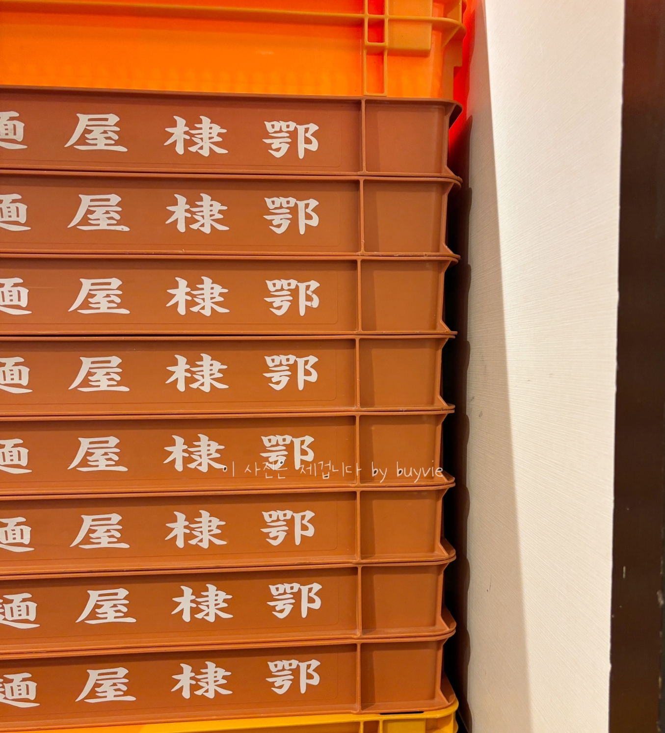 벽 한쪽에는 면 상자가 이렇게 잔뜩 쌓여있다. 사실 국물에 대해서는 처음이라 경험해 본 정도? 첫맛에 엄청 좋았거나 나빴다고 말하기는 애매하다. 다만 면의 식감은 상당히 개성있었고, 다시마국물과 함께 먹는 다른 메뉴도 궁금했다.
