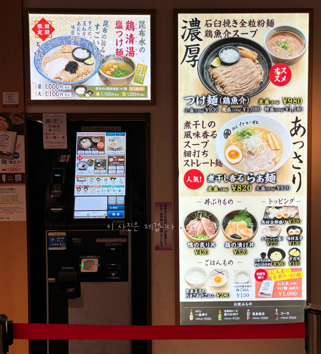 여기는 주문을 먼저하고 다시 줄을 서게 되어 있다. 그러니까 주문할 때 줄 한번 서고, 식권 가지고 반대편에 줄을 선다. 키오스크의 메뉴는 위와 같다. 그림에 보는 것처럼 츠케멘이 시그니처이다. 현지인들은 90% 이상 츠케멘을 먹는 것 같았다. 어차피 이거 먹으러 오는 걸 테니까...