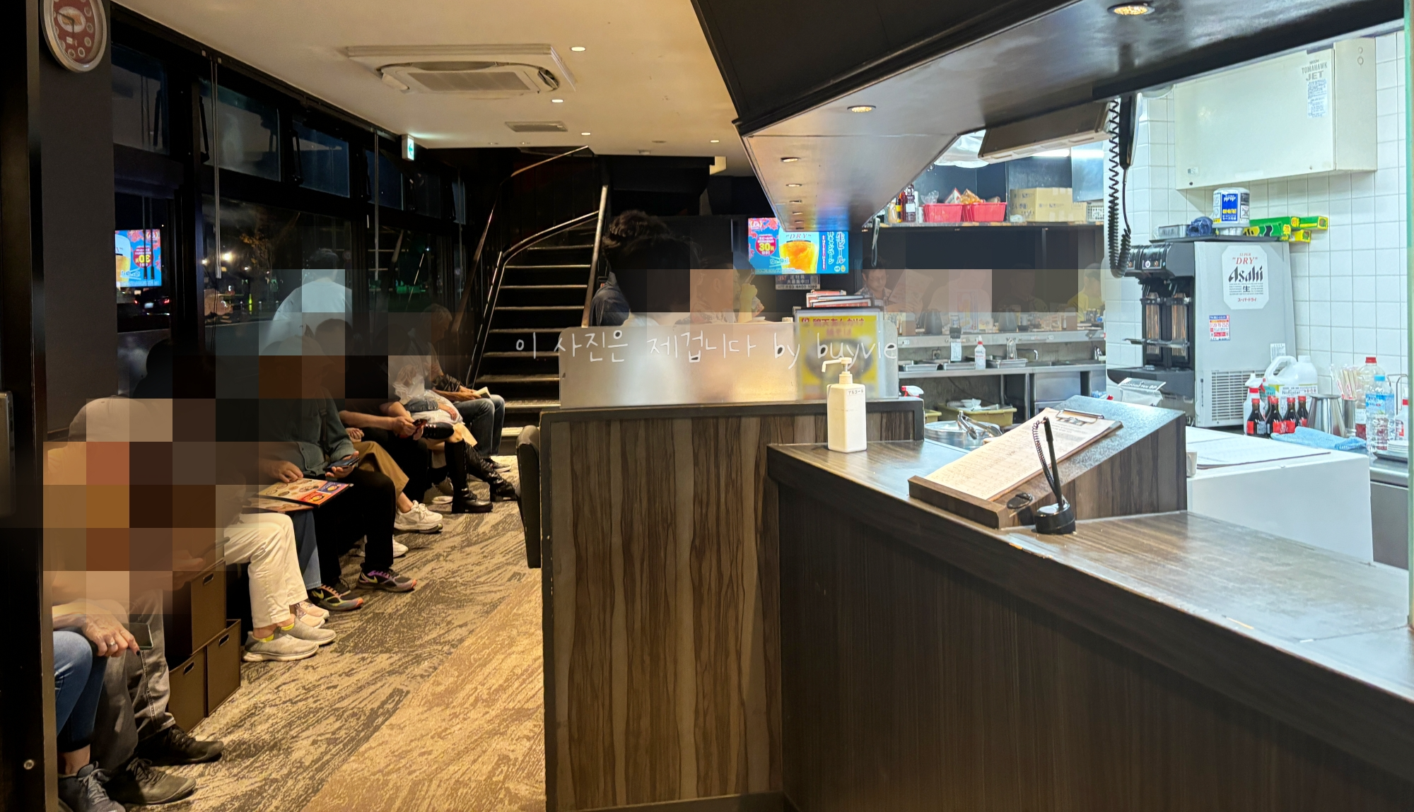 실내로 들어가보니 의자에 사람이 꽉 앉아서 기다린다. 앞쪽은 다찌테이블인데 당연히 테이블도 만석이다. 저 틈에 앉아 기다리긴 시른데...