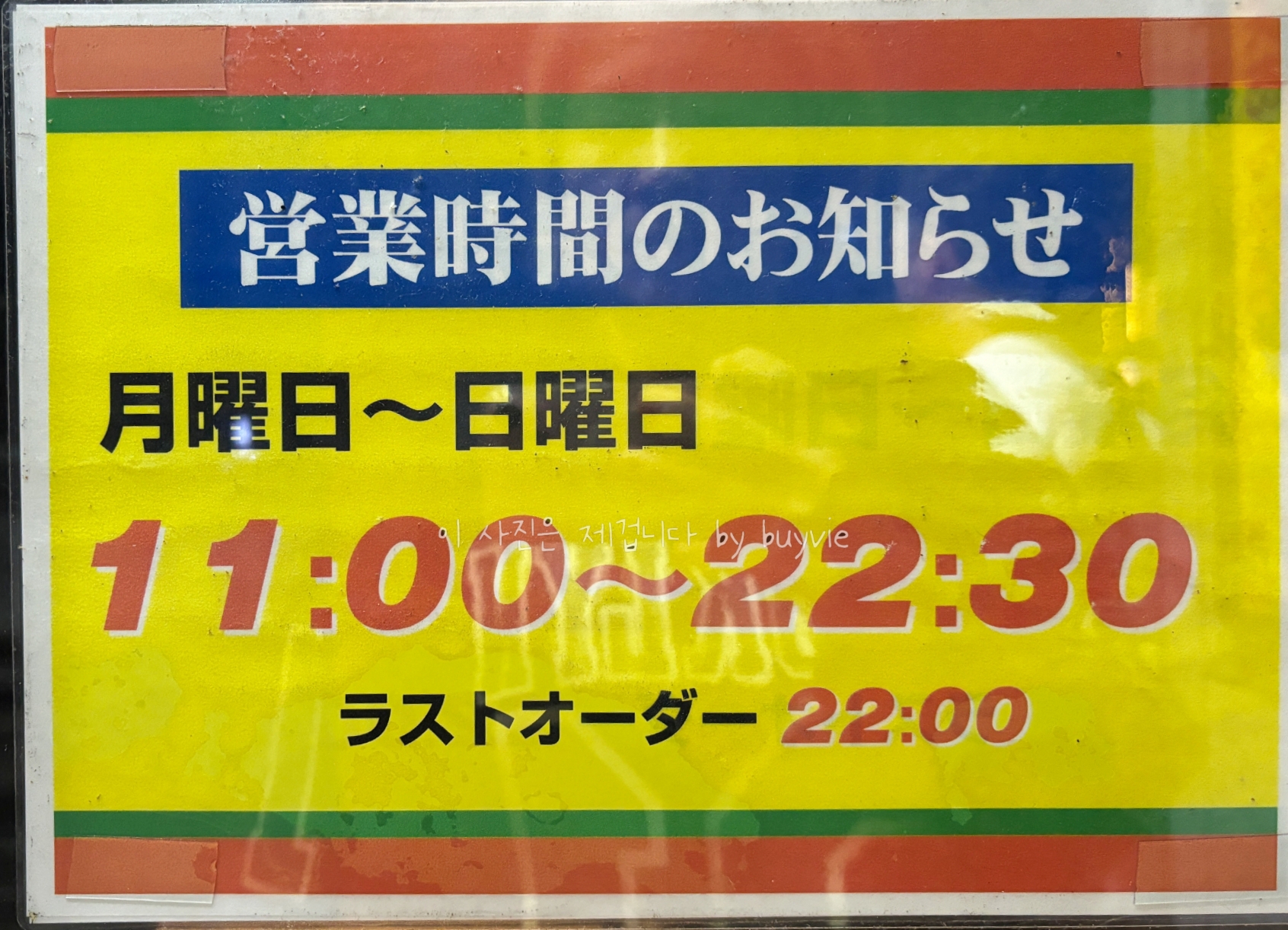 교자노오쇼 시치조카라스마점 영업시간은 위와 같다. 11:00 ~ 22:30