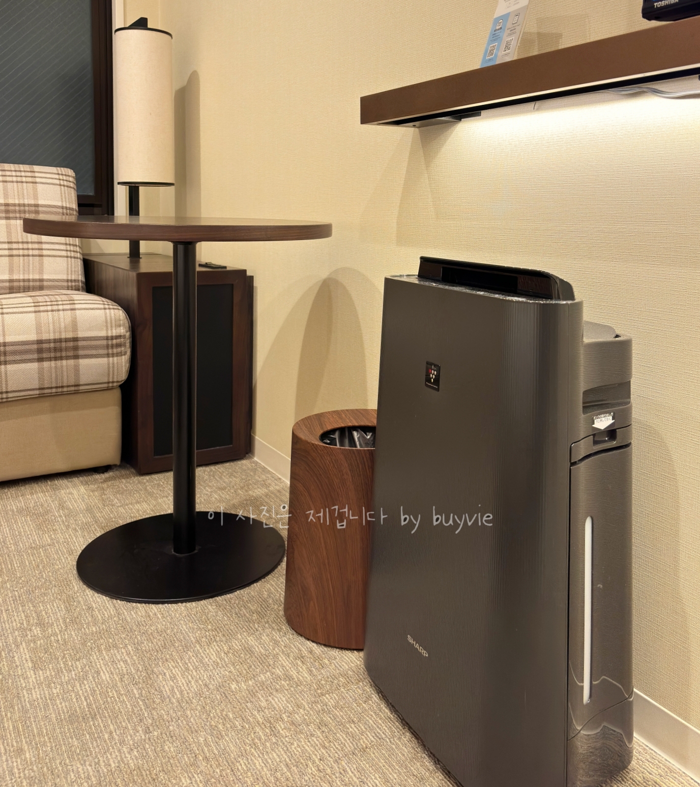 창가에 소파와 컨텐츠가 있어 요기 위에 올려 놓고 충전하기 좋았다. 제습기? 혹은 공기청정기가 있다.