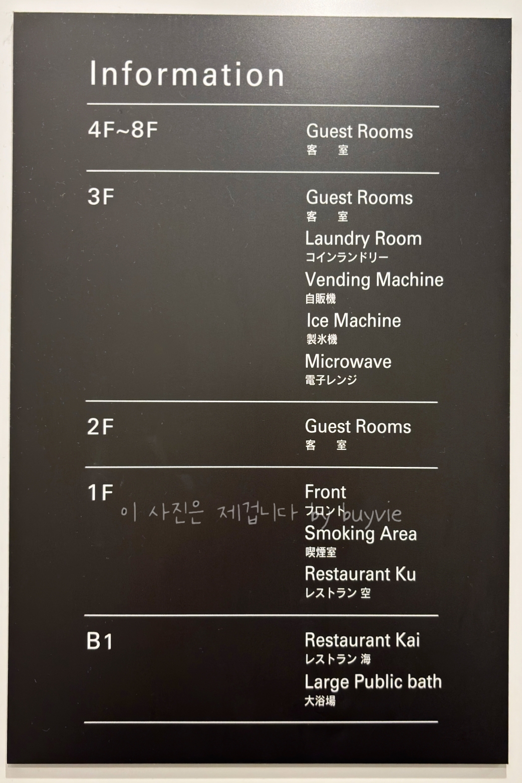 대욕장 앞에 자판기 1개, 3층 세탁실에 자판기 2개 있다. 가성비호텔인 로이지르 호텔이지만 문 앞에 있을 것 같은 편의점이 없다. 가장 가까운 편의점을 찾는다면 이온몰 1층 마트를 이용하면 된다.
