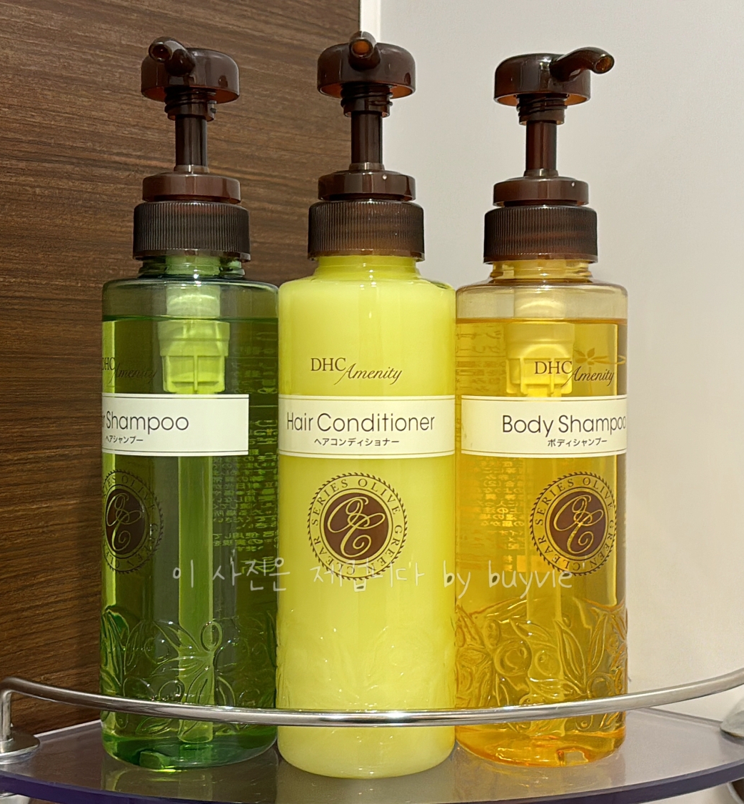 샤워실에 비치된 샴푸, 콘디셔너, 바디샤워는 DHC 제품이고, 프론트데스크 근처에 셀프 어메니티는 위와 같다.