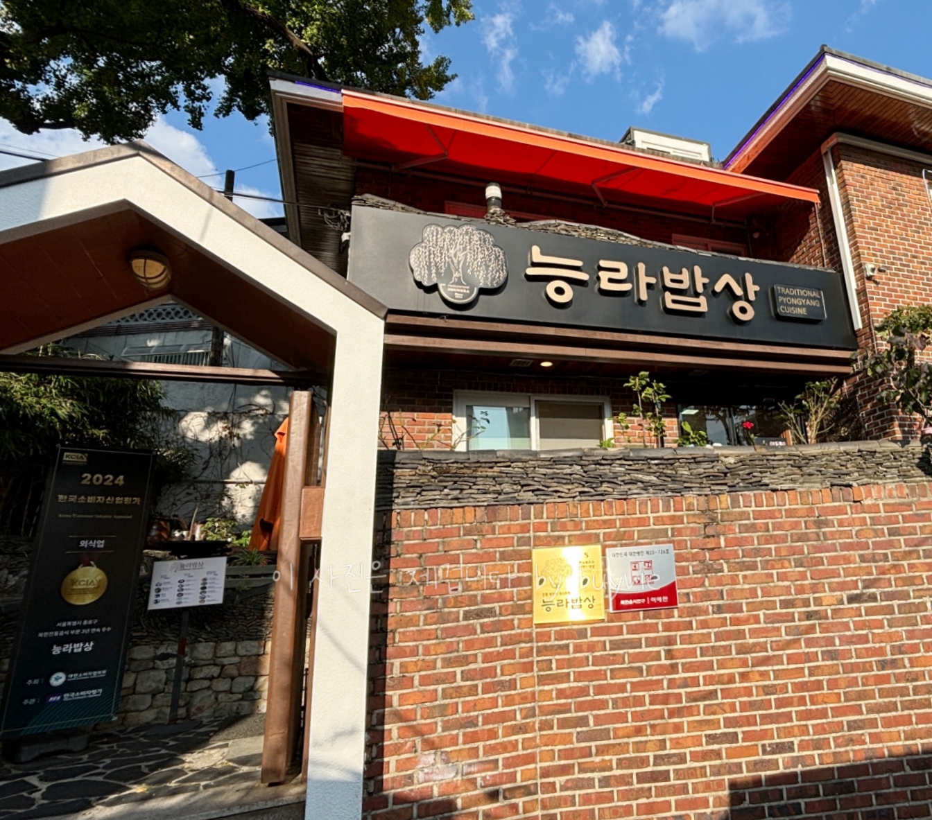 딜쿠샤를 보러 갔다가 북한음식전문점 능라밥상을 발견했다. 문 앞에 블루리본 스티커가 쾅쾅쾅쾅.... 2017년부터 수록되었고, 내년까지 쭈욱 수록될 집이다. 북한음식은 관심이라 고민없이 맛보러 들어갔다.