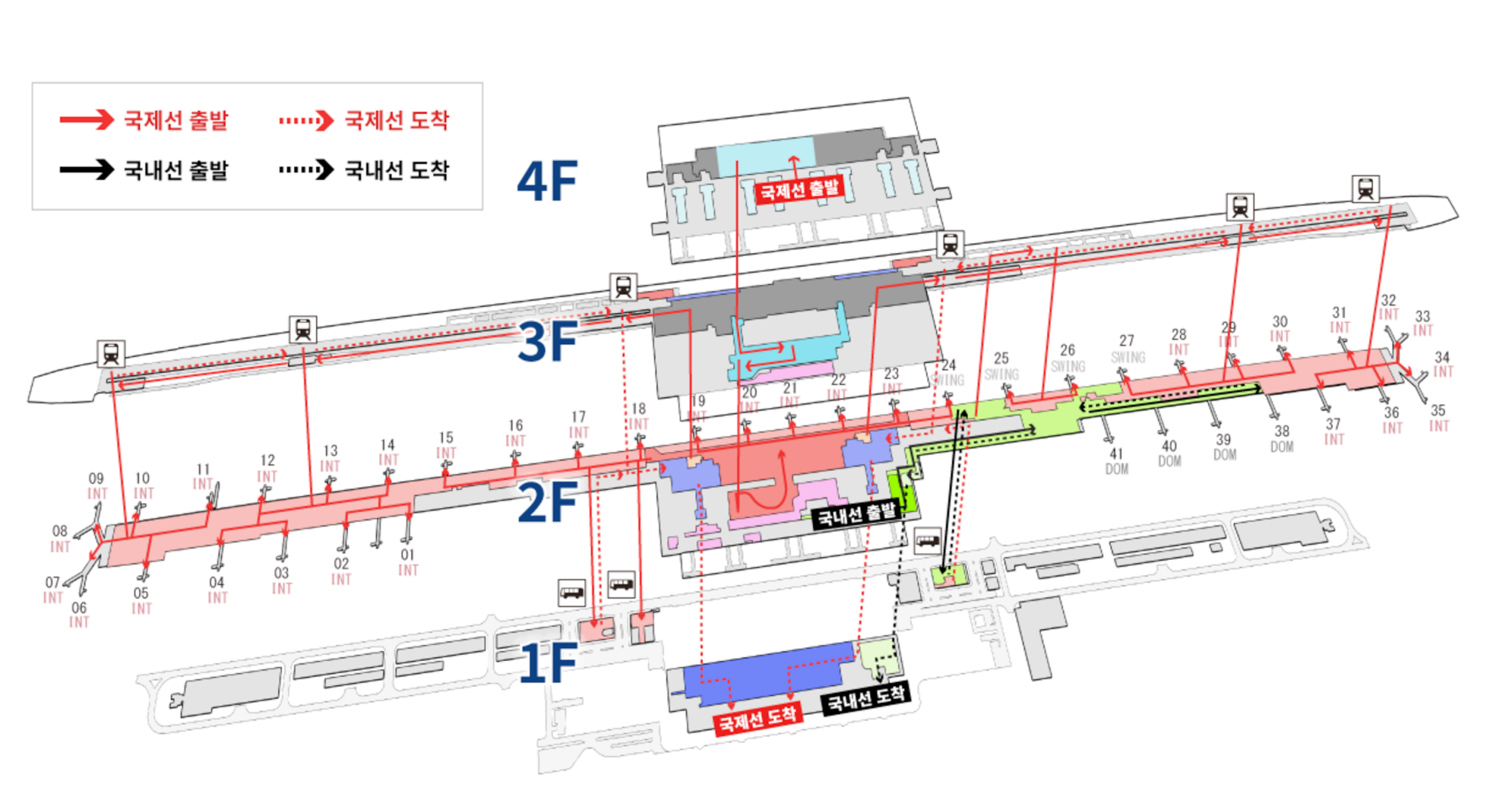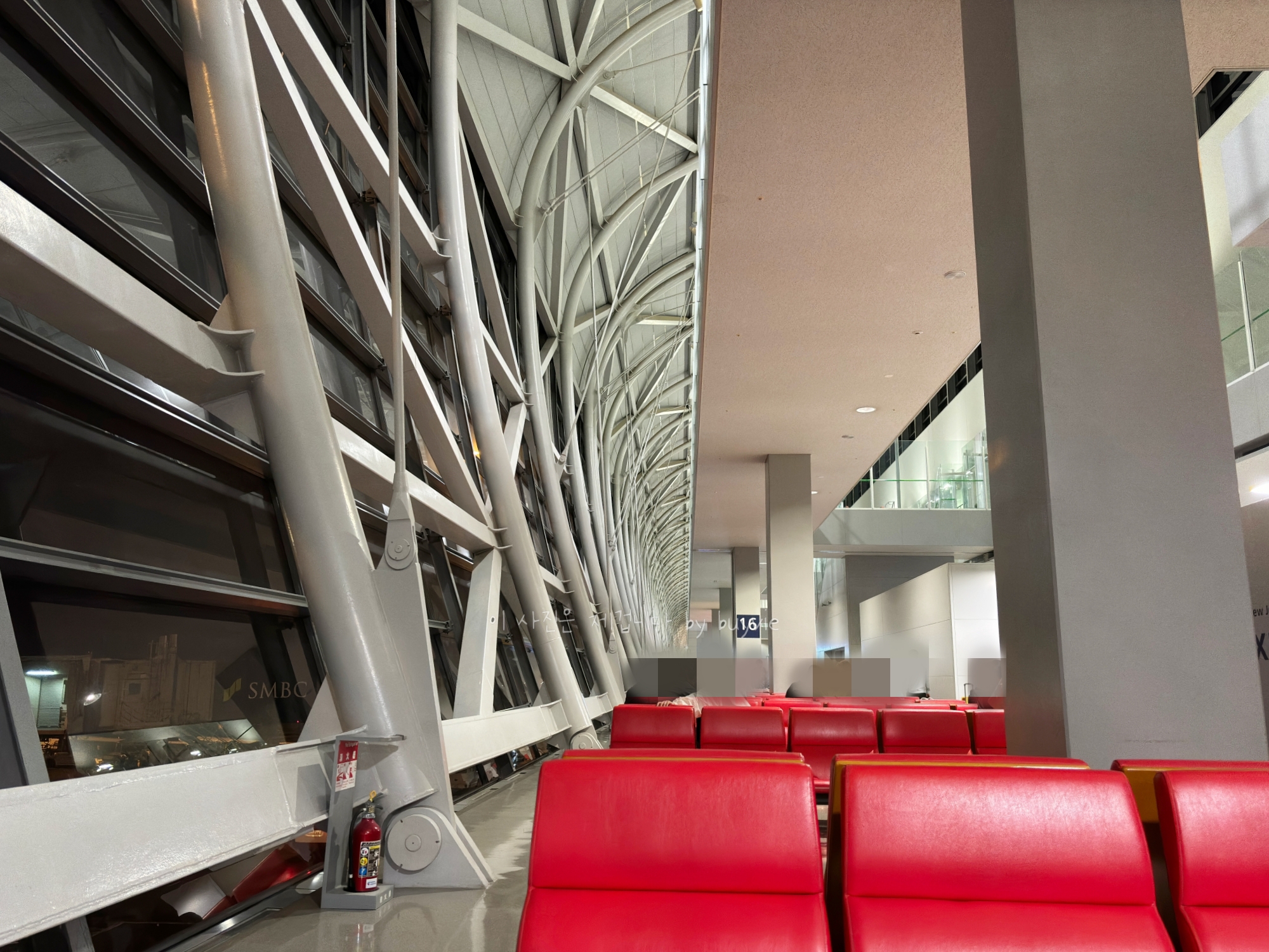 나머지 양쪽 윙으로 갈수록 벤치와 게이트만 나오고 게이트 사이가 먼 편이다. 이끝에서 저끝이면 10,000보 충분할 듯. 중간에 목 마르면 자판기를 이용하면 된다. 무심하게 화장실과 자판기만 드문드문 보이는, 본관에 비하면 다소 적막한 공항 게이트가 이어진다.