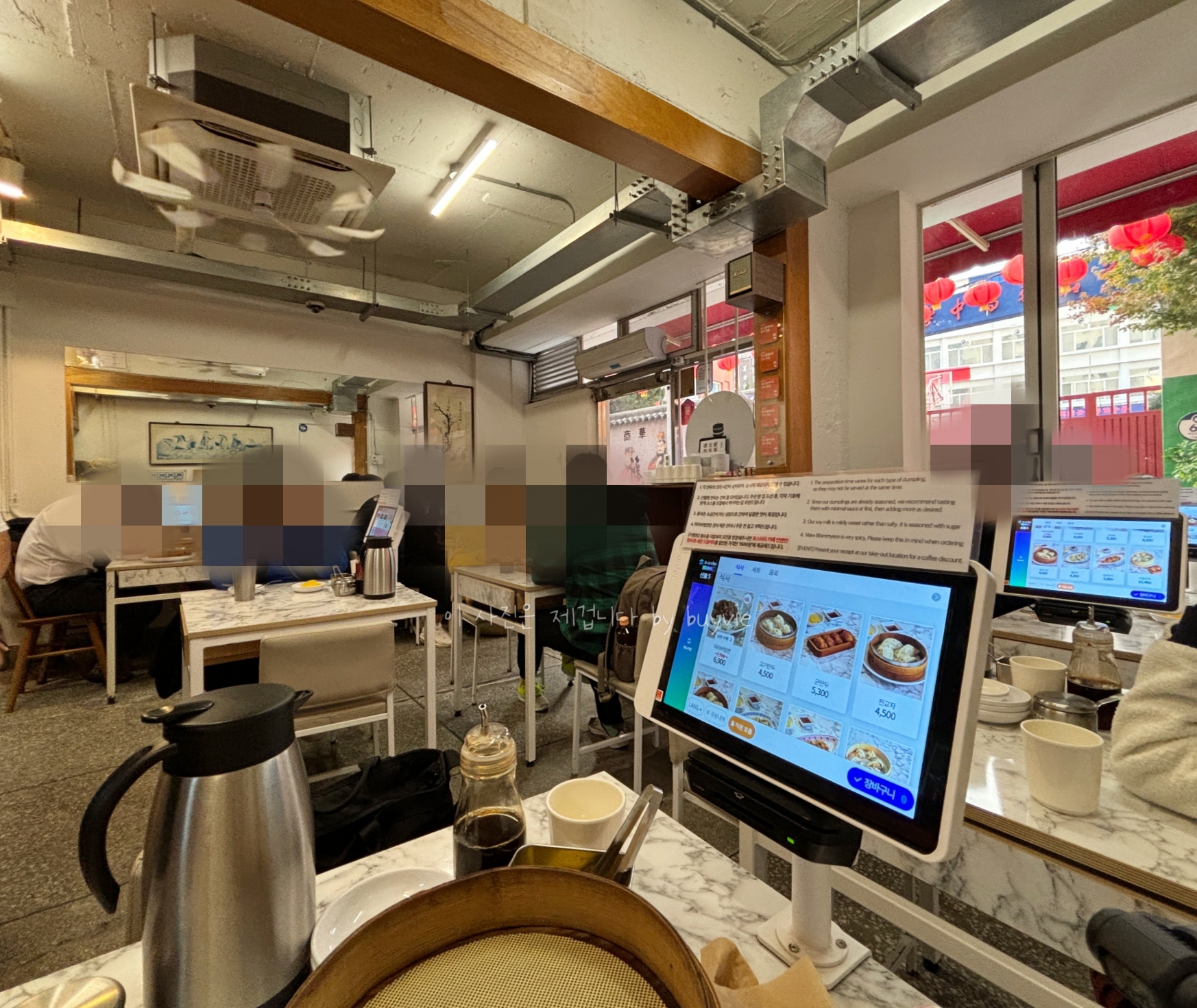 되도록 많은 사람을 수용하기 위함인지 1인 테이블이 있다. 여럿이 오면 테이블을 붙이면 될 것이다. 테이블마다 주문 패드가 있다. 여기서 주문하고, 카드결제까지 할 수 있다. 영수증이 필요하다면 결제 과정에서 영수증 발행을 선택하면 된다. 종이영수증은 기계에서 바로 나오는 게 아니라 메인 카운터에서 프린트하여 직원이 가져다 준다. 결제 후에는 주문 변경이 불가능하다.