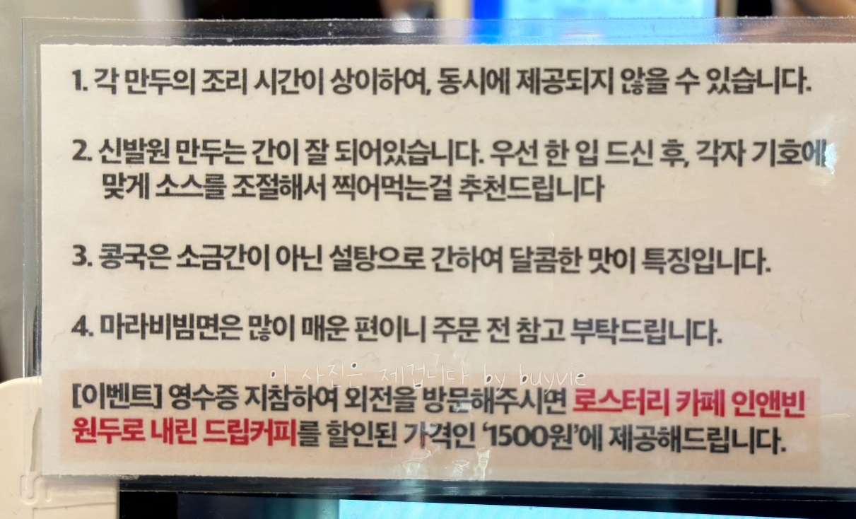 빨간색 간판의 신발원 옆 하얀색 간판 신발원은 신발원 외전 이라는 신관으로 포장만 해 가는 곳이다. 포장과 식당을 분리하면서 포장코너가 훨 쾌적해졌다. 네이버, 쿠팡이츠 예약 후 픽업도 가능한 듯 하다. 만두 완제품 이외에 냉동만두도 판매한다.