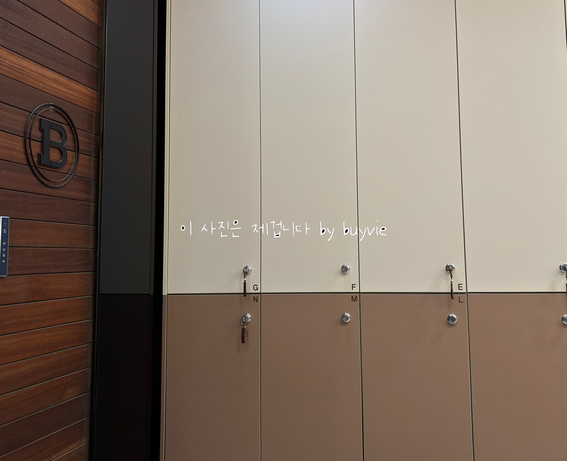 출입문 옆에는 사이즈 넉넉한 라커가 있다. 열쇠가 꽂혀 있는 건 비었다는 뜻으로 셀프로 짐 보관 하면 된다. 사이즈도 넉넉하고 깔끔하고 셀프로 운영하는 점도 마음에 든다.