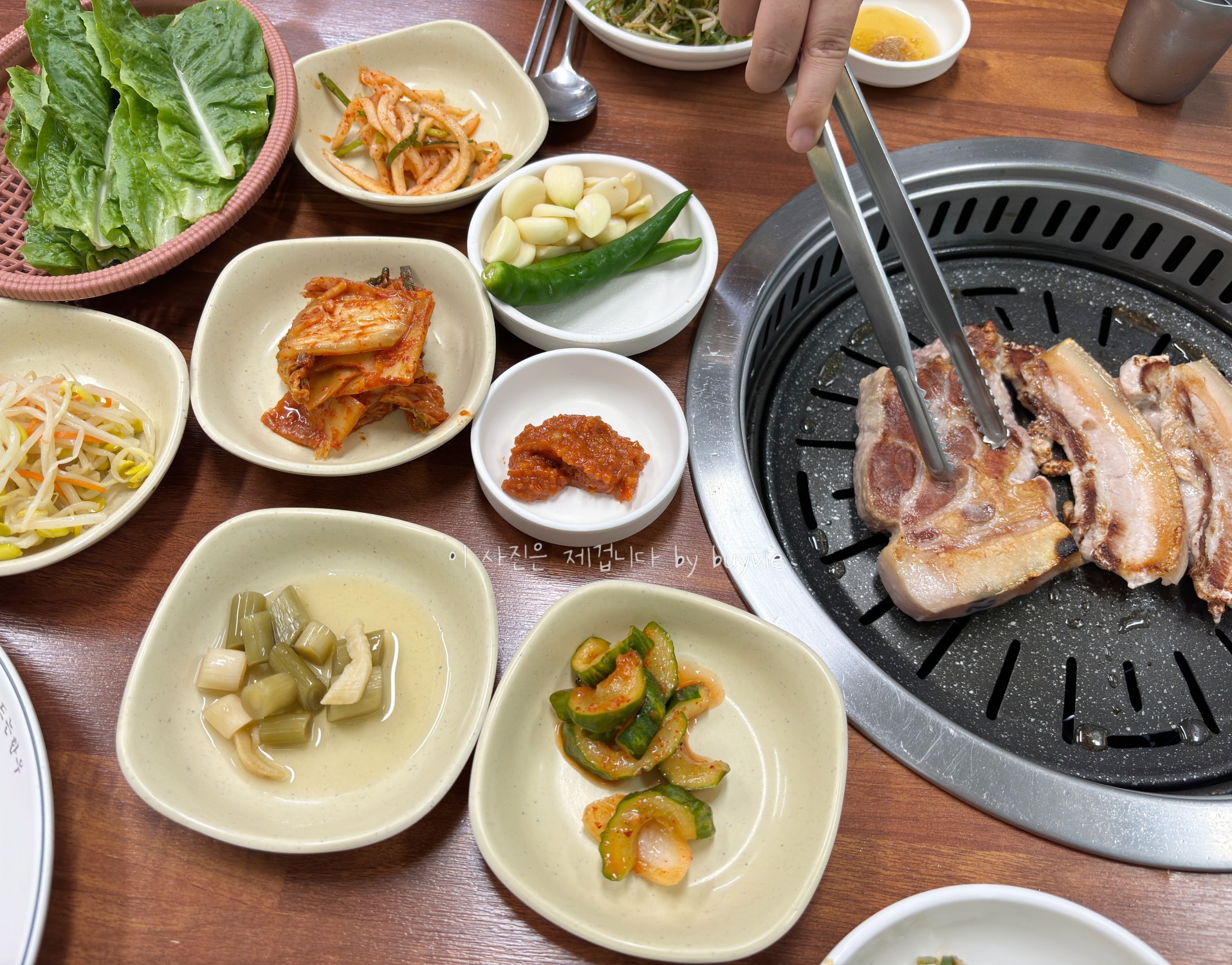 그런데 이제 보니 돼지 껍살은 흑돼지로 주셨네. 제주 스딸이다잉.