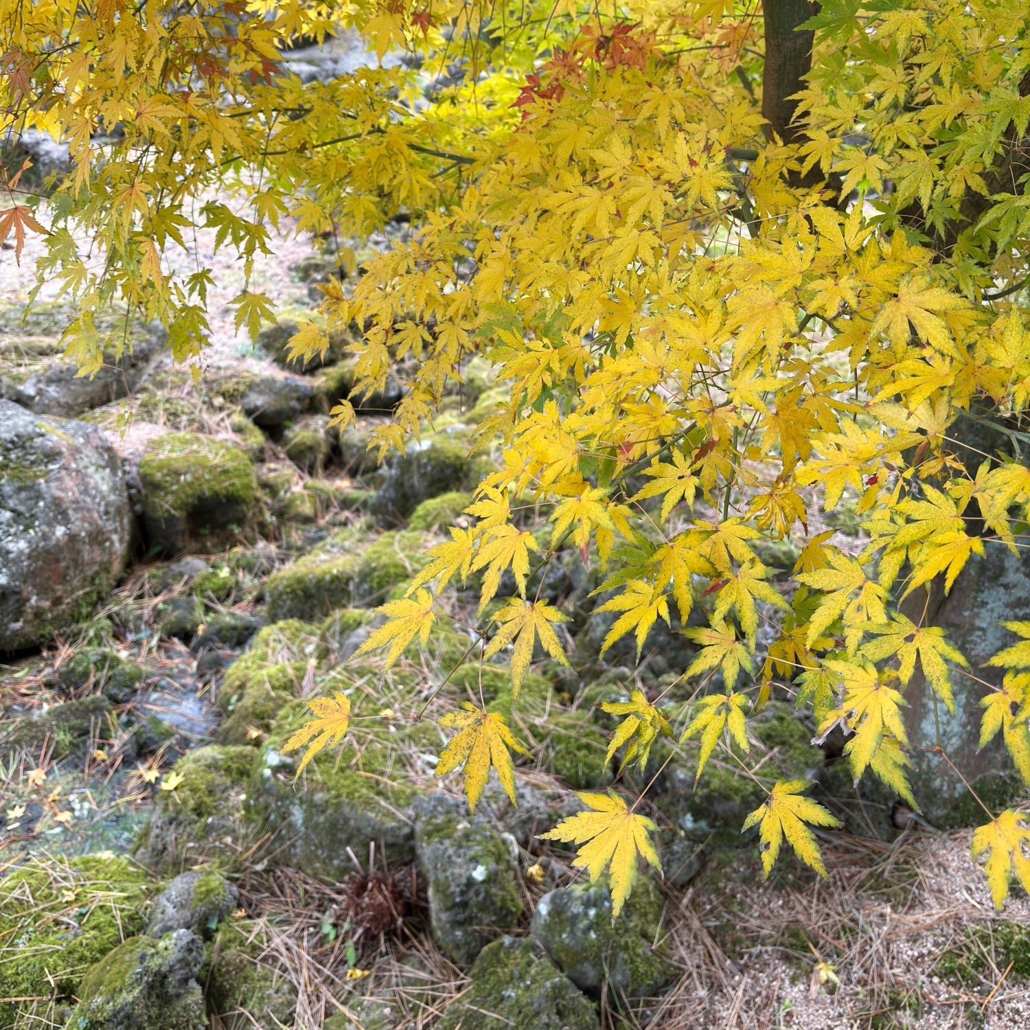 이 자리가 가장 인기 많은 가을 스팟이다. 단풍 아래에만 갈색 낙옆이 떨어져 있고 그 바깥 쪽은 다시 초록색이다. 이런 풍경은 육지에서는 보기 어려운 모습이다.