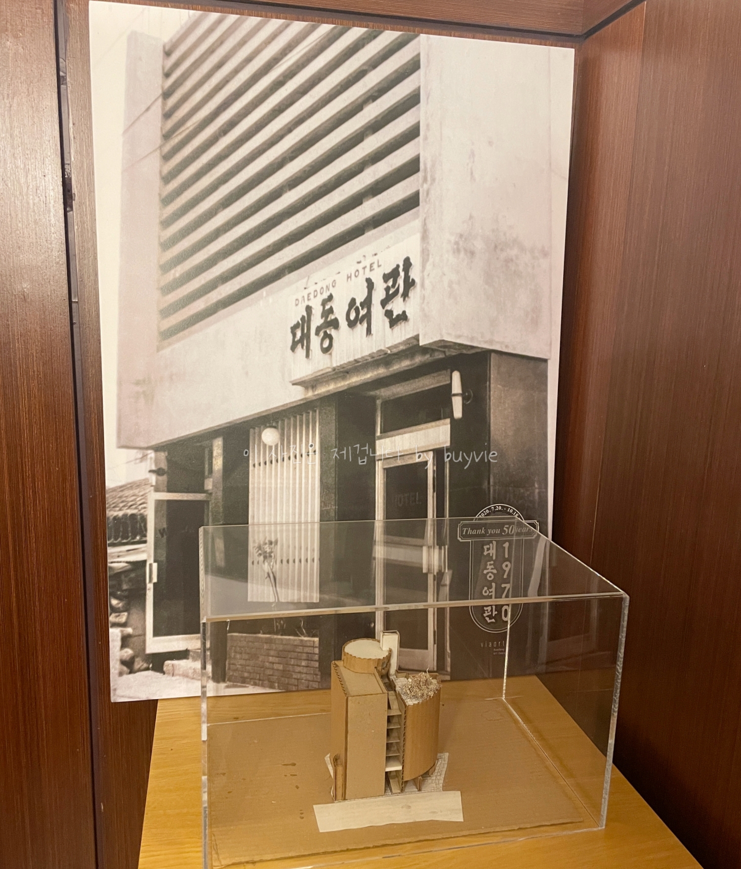 대동호텔은 1970년 대동여관으로 처음 오픈했고, 그때의 모습은 위와 같다. 앞에 있는 모형을 보면 뒷편으로 연결된 라운드형 건물이 별관이다.