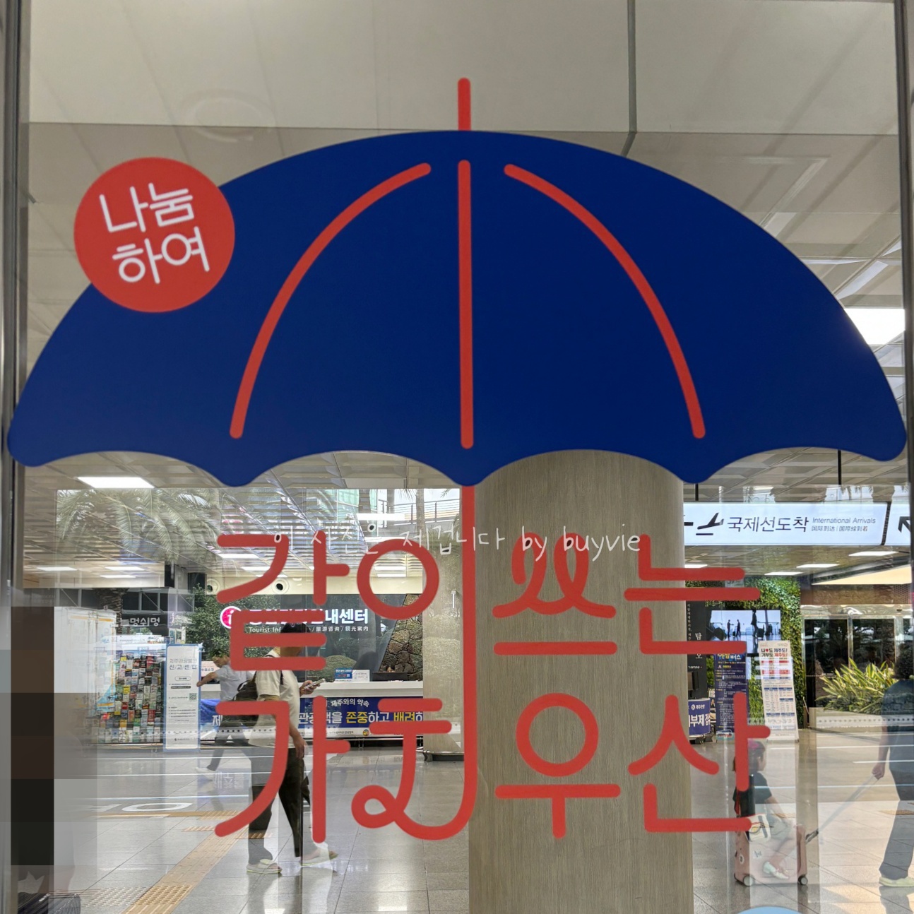 제주공항에 도착해 갑자기 비가 내린다면? 그런데 우산이 없다면 출입구 쪽을 한번 살펴보자. 가치우산 거치대가 있다. 1층 2번 게이트, 3층 3번 게이트이다. 우산을 쓰고나면 떠나기 전 반드시 반납하는 것을 잊지 말 것.