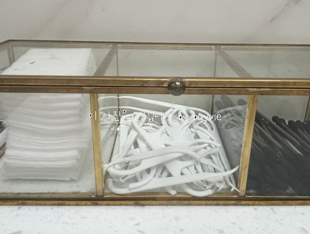 화장솜, 치실, 면봉도 세심하게 준비해 놓았다. 이런 1회용품은 손님들이 어떻게 쓰냐에 따라 지속성 여부가 결정될 것이다. 아직까지는 잘 활용되고 있는 것 같다.